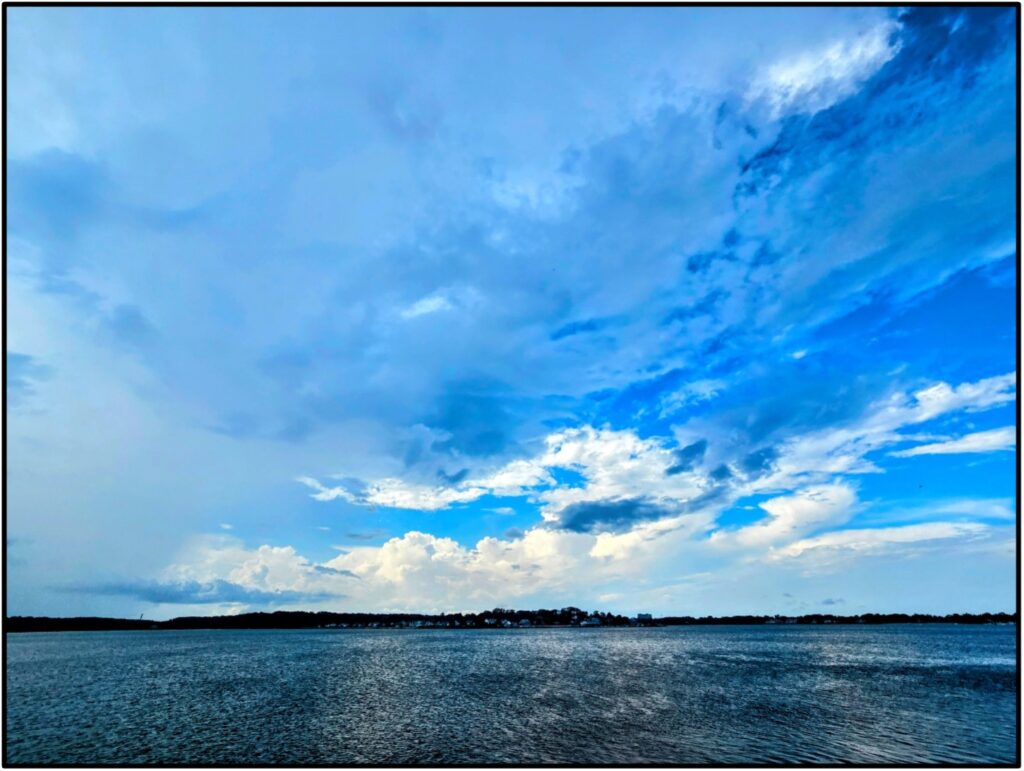 From there, it’s a short drive to the Shark River, where we pick out a bench, sit, and eat as we watch the quiet goings-on. The sky over the river always puts on a show, and it’s a magnificent spot to relax and eat.