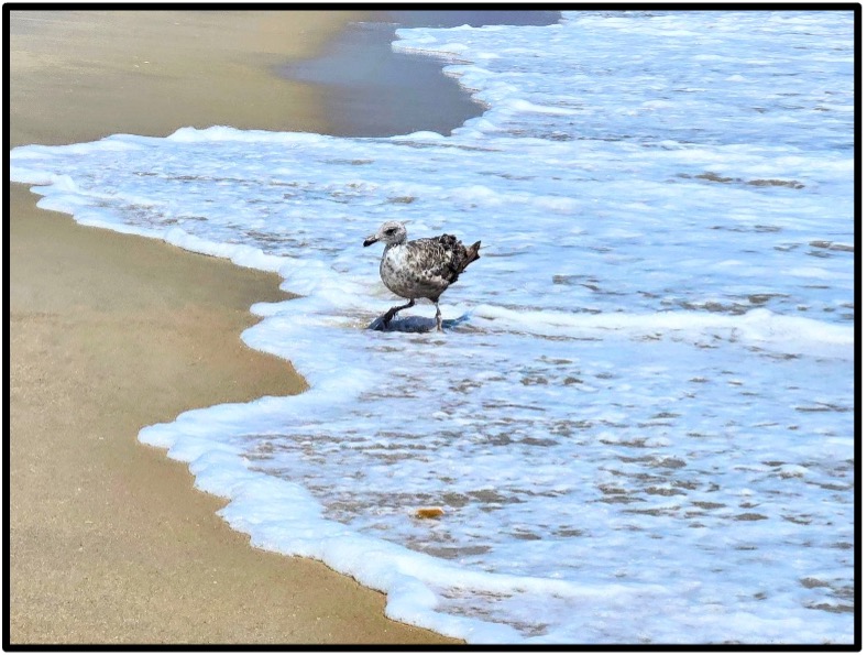 The water was perfect that day, and we stayed in the ocean for a long time, rolling over the waves. After a not-so-short nap on our towels, we took a long walk to see the jetties along the shore and watch the shorebirds and other scavengers.