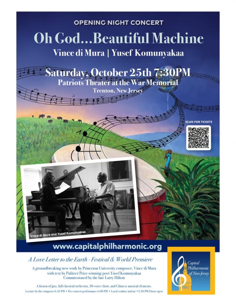 When asked by his late friend, Larry Hilton, to “celebrate what was central to (his) being,” Pulitzer Prize-winning poet, Yusef Komunyakaa, reflected on his time growing up in Louisiana where he would “receive, in a way, the surprises that nature had for (him),” Komunyakaa said in a press release. Through these reflections came the Capital Philharmonic of New Jersey’s Oh God…Beautiful Machine, a musical and literary “Love Letter to the Earth.”