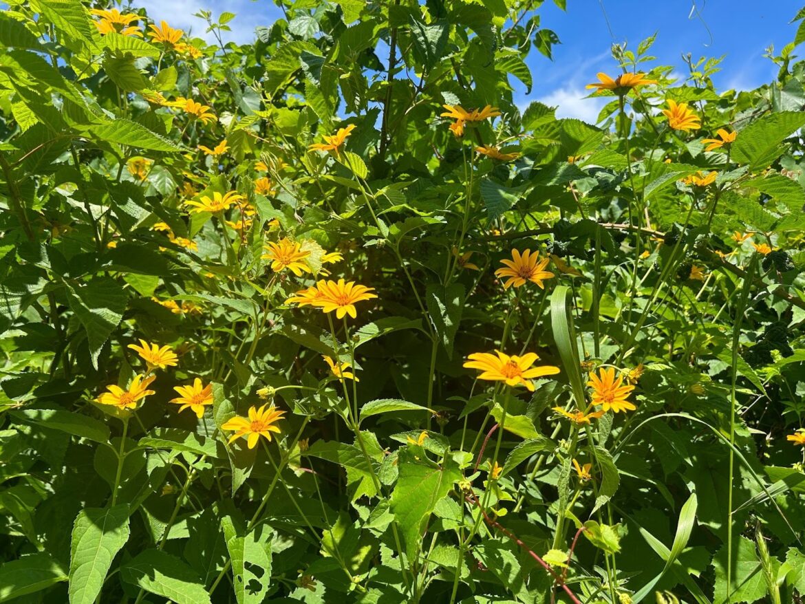 A sunflower is the ultimate symbol of summer. With nearly 20 species native to New Jersey, there are certainly plenty to choose from. Interestingly, there are many look-a-like species that are not real sunflowers! Known as false sunflowers and part of the Heliopsis genus, these flowers are just as bright and sunny as true sunflowers and are still a great native choice for your meadow. The only difference is that the rays, or showy yellow petals, of false sunflowers do not fall off while they do fall off in the case of true sunflowers. (Caption for feature photo: Heliopsis species can grow anywhere from 3’-5’.)