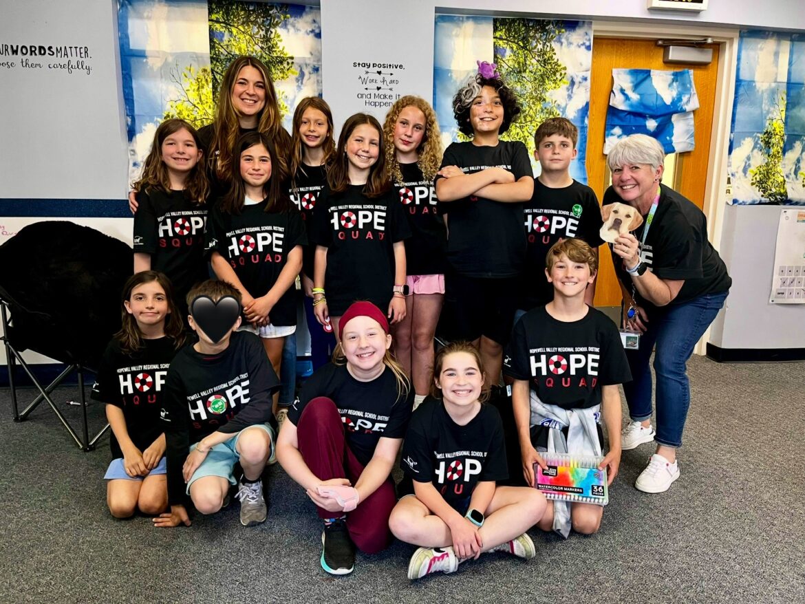 Last year, HVRSD proudly launched Hope Squad – a developmentally-appropriate, evidence-based suicide prevention program – in each of our six schools. A Hope Squad consists of students who have been nominated by their peers to be trained in noting signs of distress, reaching out to students, and connecting them with help and hope. Hope Squads educate the entire student body to reduce stigma surrounding mental health. Members of the Hope Squad meet regularly with trained advisors for education and support.