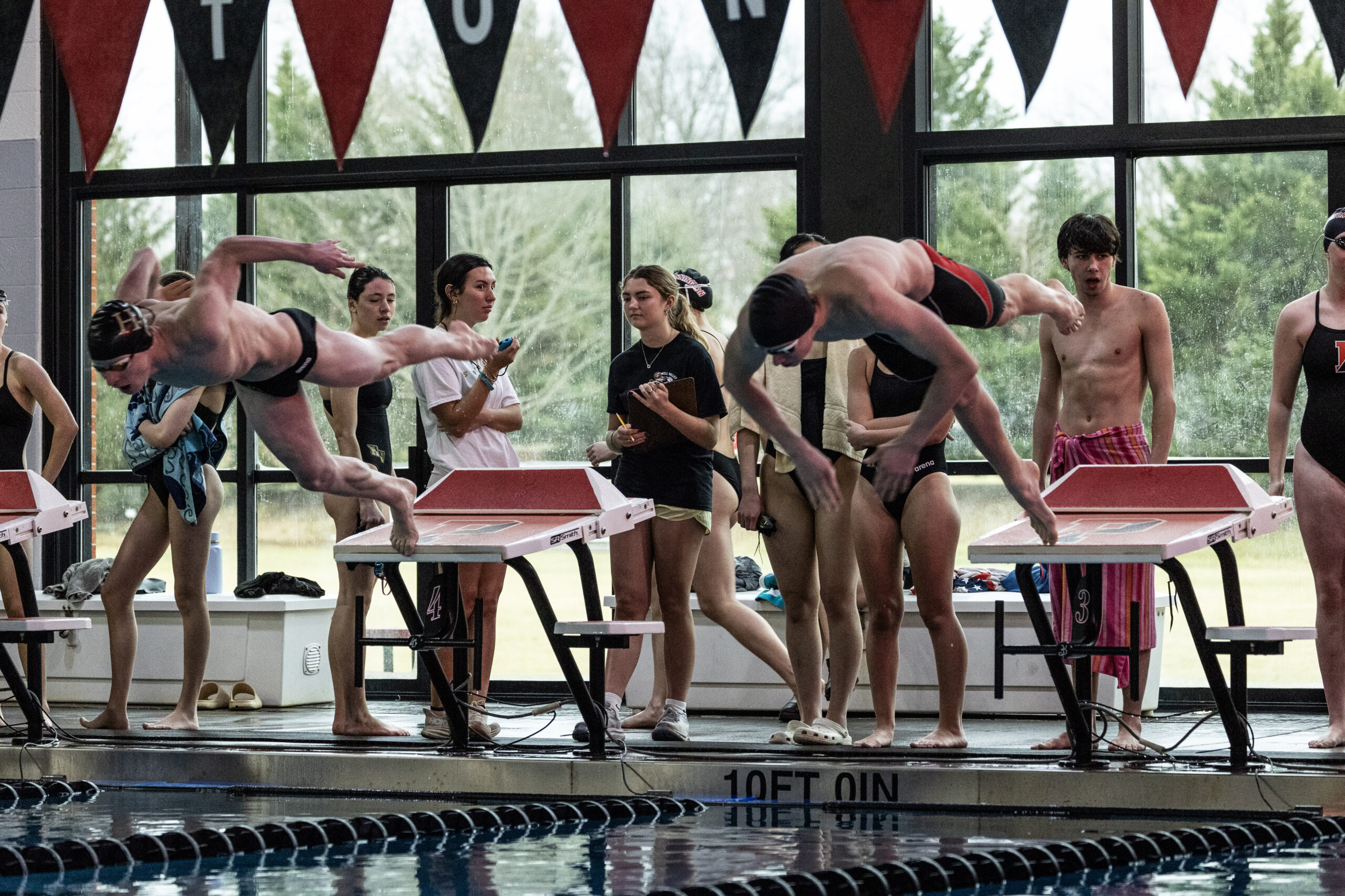 On deck, the rivalry followed a familiar rhythm. During the meet, coaches stayed focused on races and lineups. When the final events ended, that intensity gave way to handshakes, hugs and congratulations exchanged between staffs who see each other year after year.