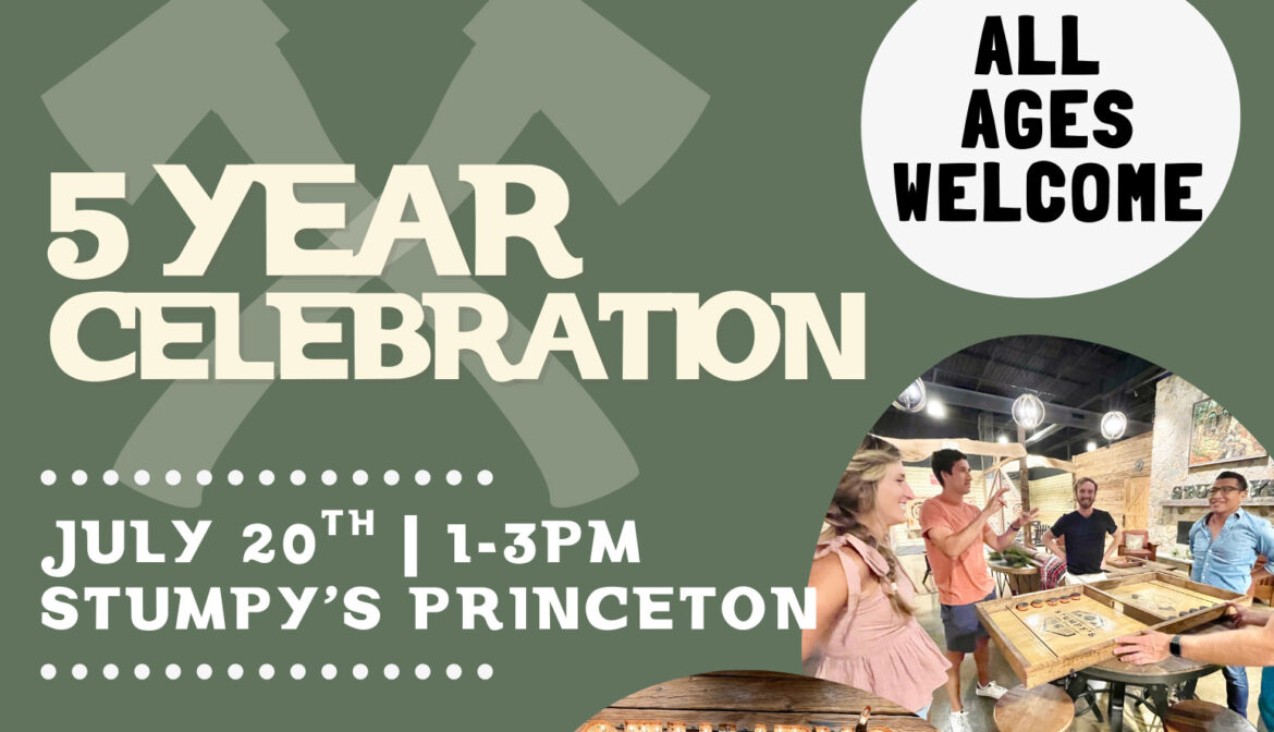 Stumpy’s Hatchet House in Princeton, owned by Hopewell residents Alison and Scott Kuppe, is marking its fifth anniversary with a family-friendly celebration on Saturday, July 20, from 1 to 3 p.m.