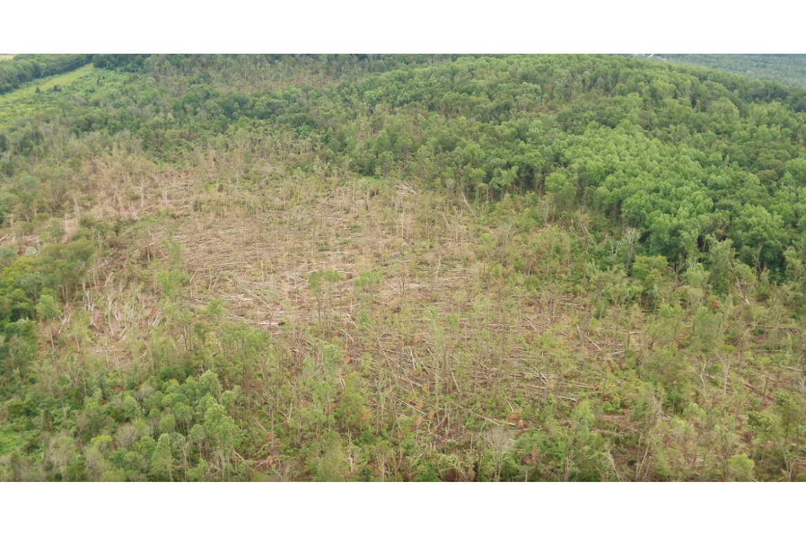 Feature image caption: Aerial imagery taken from a drone in 2021 of the forest damage after the tornado.