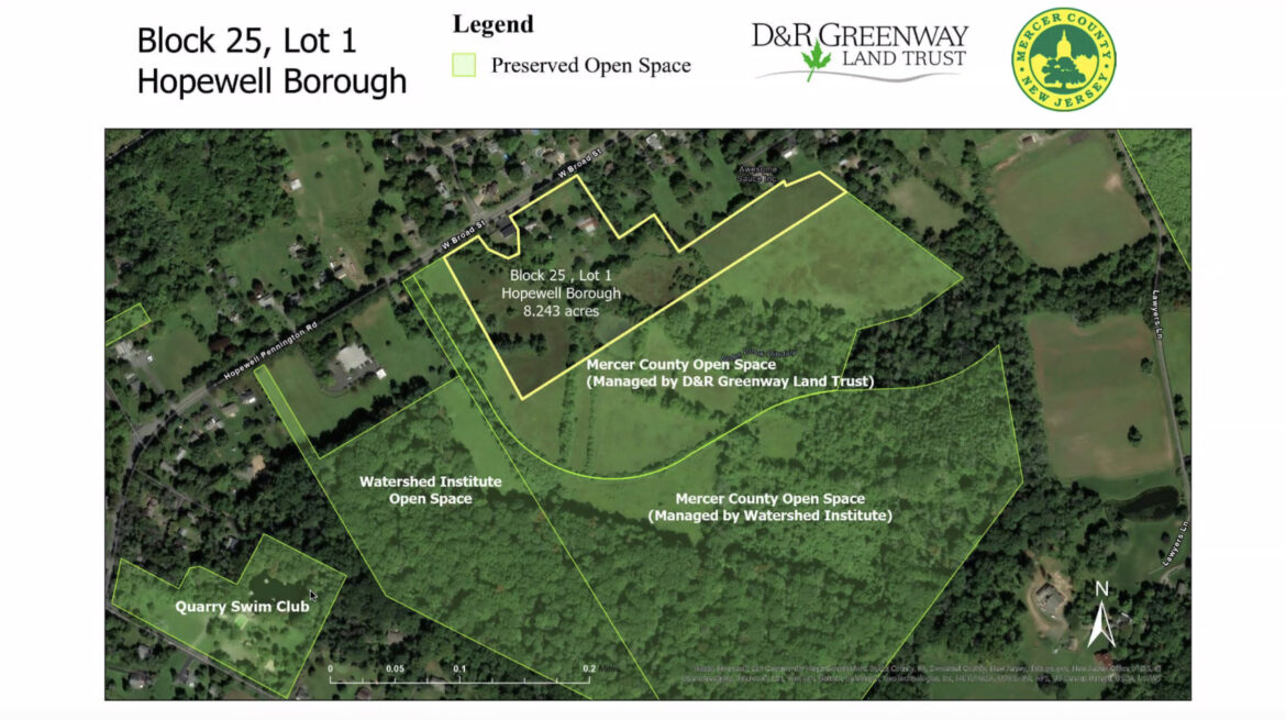 A plan to divide and preserve a portion of Hoge Farm was presented to the Hopewell Borough Planning Board on August 6. The proposal, prepared by Mercer County officials including Land Preservation Coordinator Cindy Taylor, would create a public open space and extend the Lawrence Hopewell Trail to the borough.