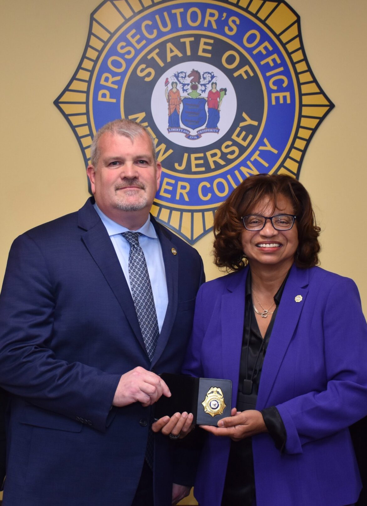 Prosecutor Jennifer Downing-Mathis, Chief Brian Kiely and Mercer County Prosecutor Marbrey. Photos courtesy of the Mercer County Prosecutor’s Office