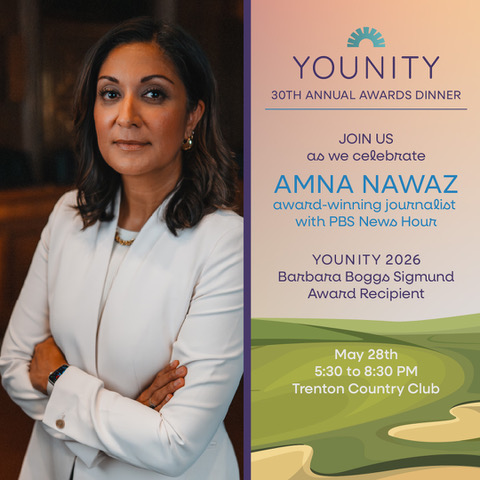 Younity, the Mercer County-based domestic violence services organization formerly known as Womanspace, will honor PBS NewsHour co-anchor Amna Nawaz at its 30th Annual Awards Dinner on May 28 at Trenton Country Club.