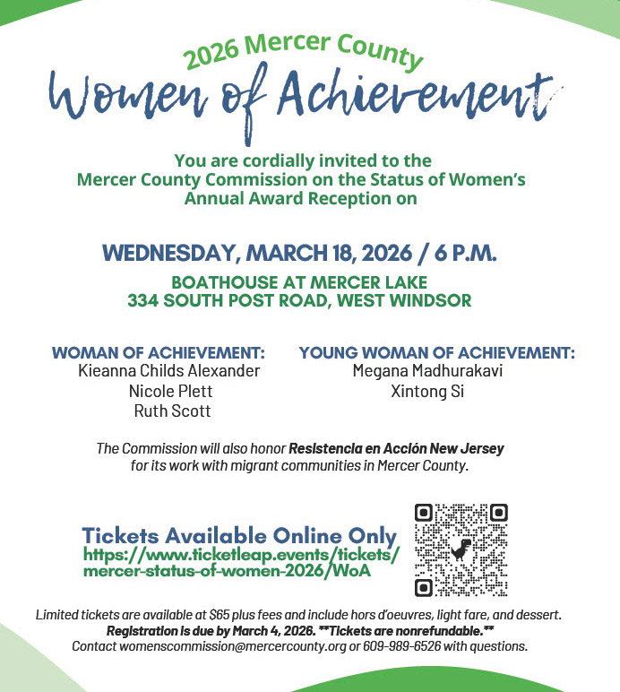 This year’s Woman of Achievement honorees are Kieanna Childs Alexander of Hamilton, Nicole Plett of Lawrenceville, and Ruth Scott of Princeton. Young Woman of Achievement awards will go to Megana Madhurakavi of Robbinsville and Xintong Si of Lawrenceville.