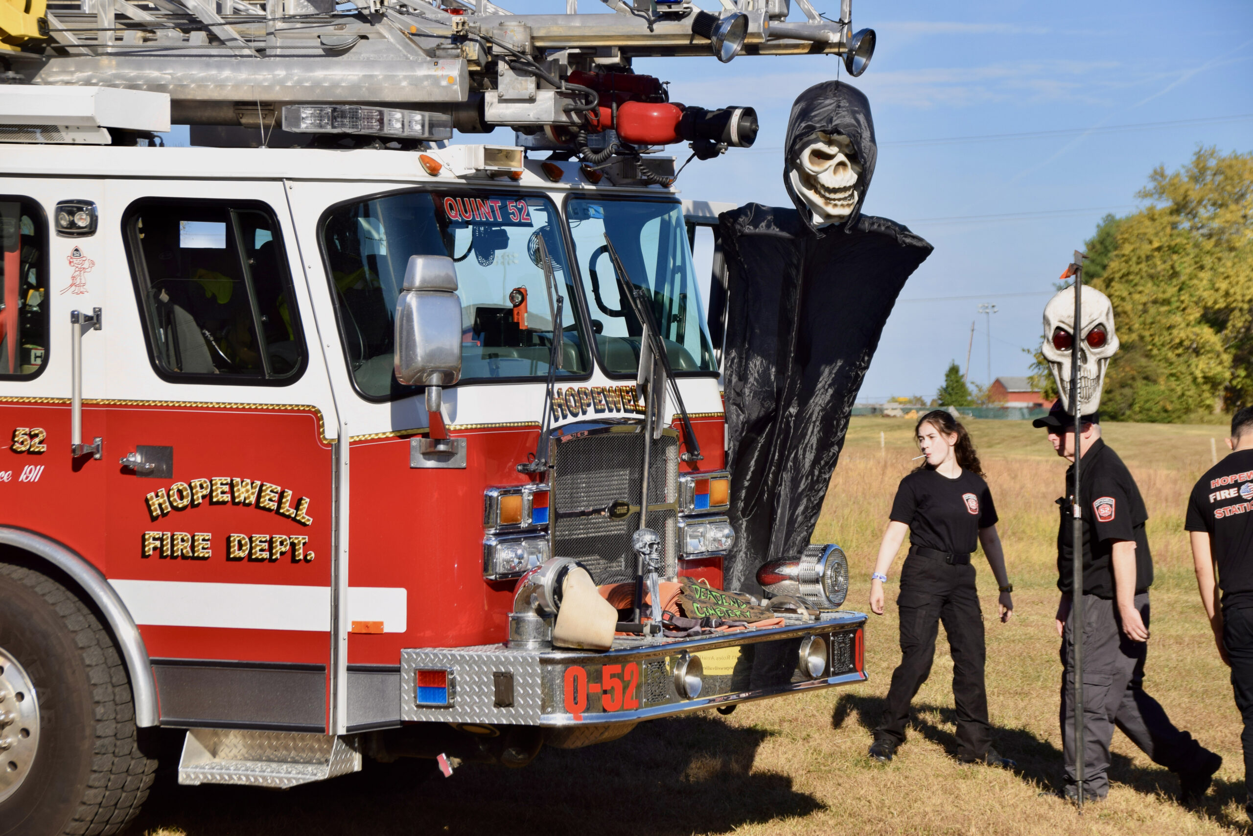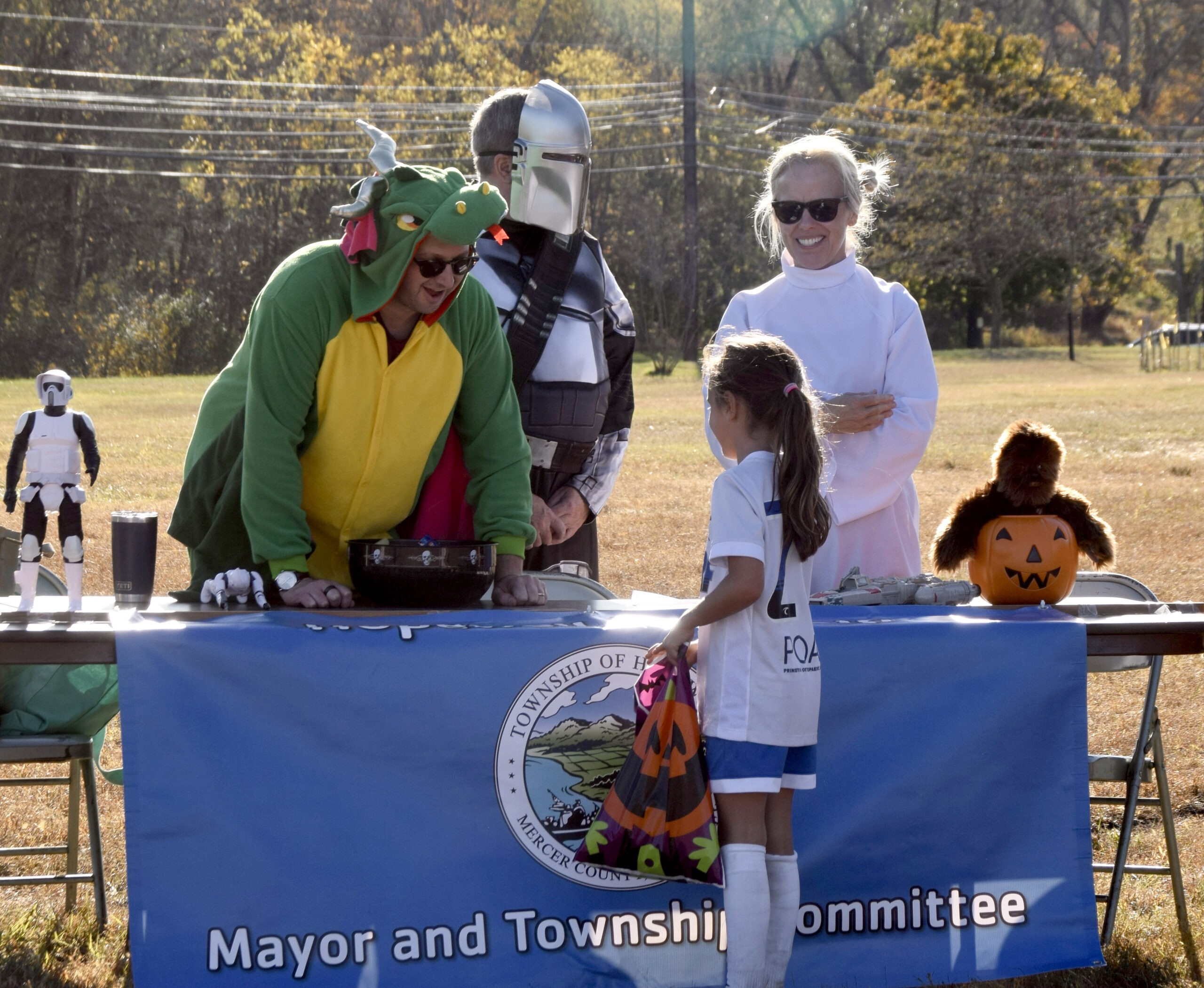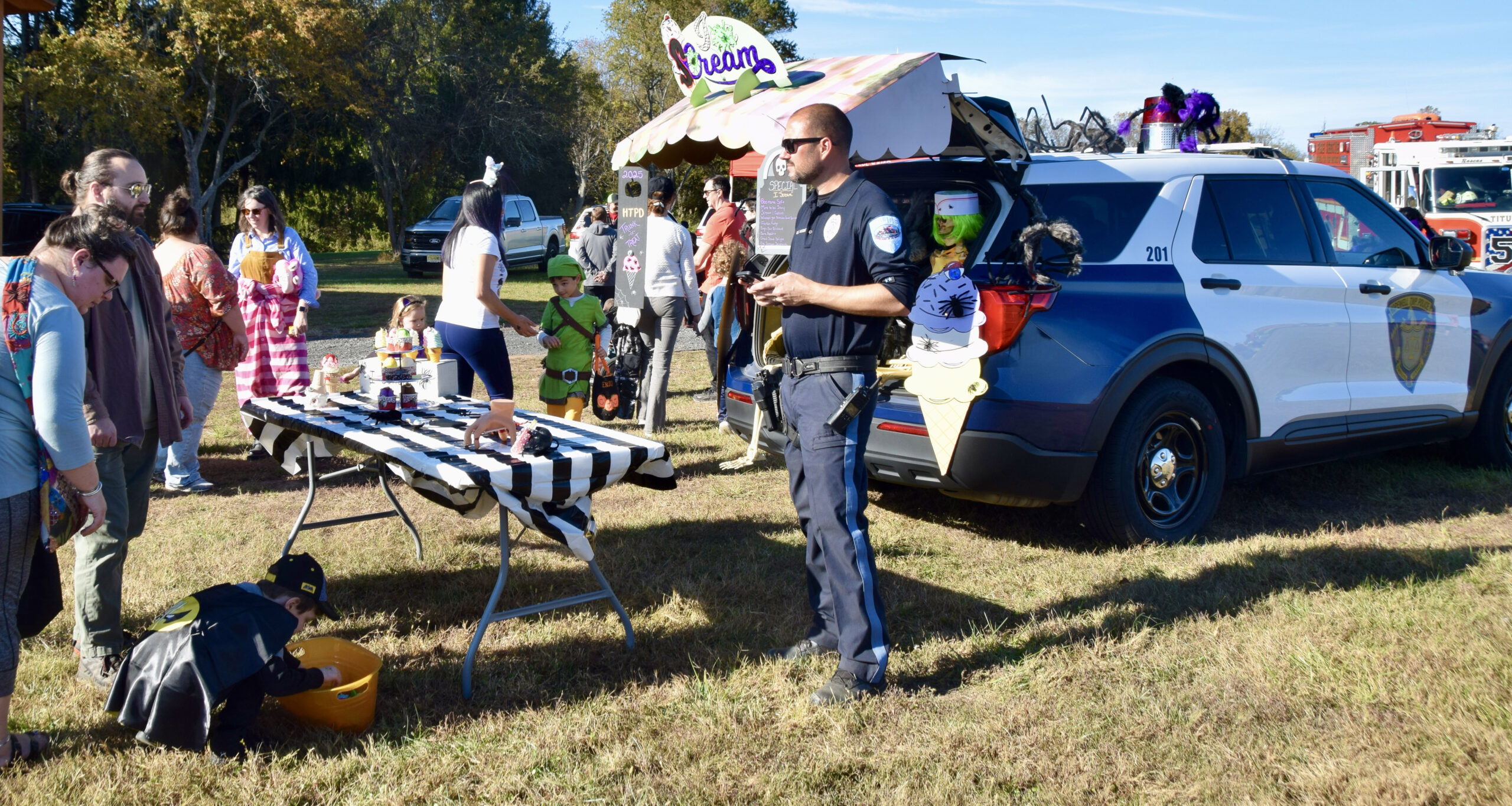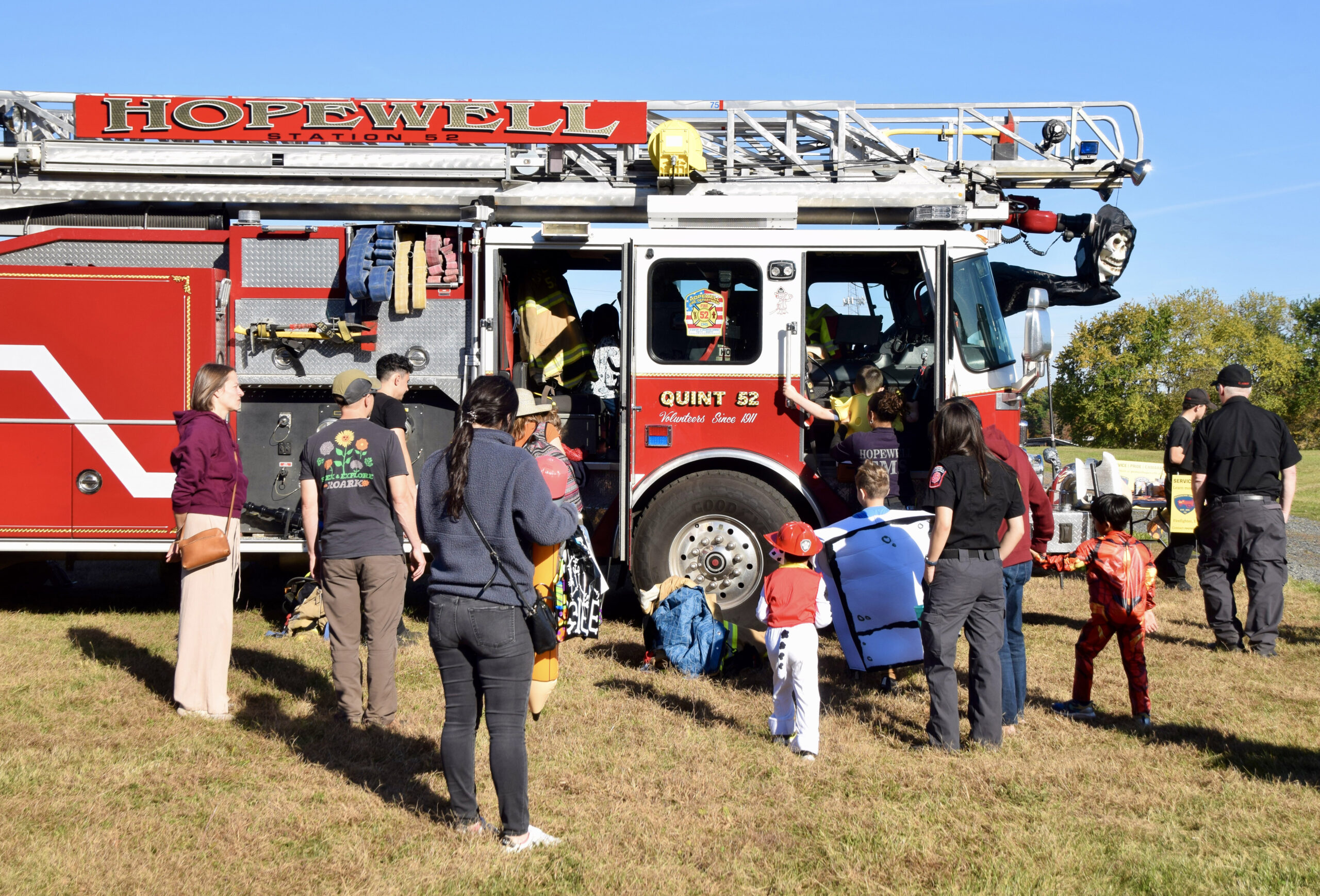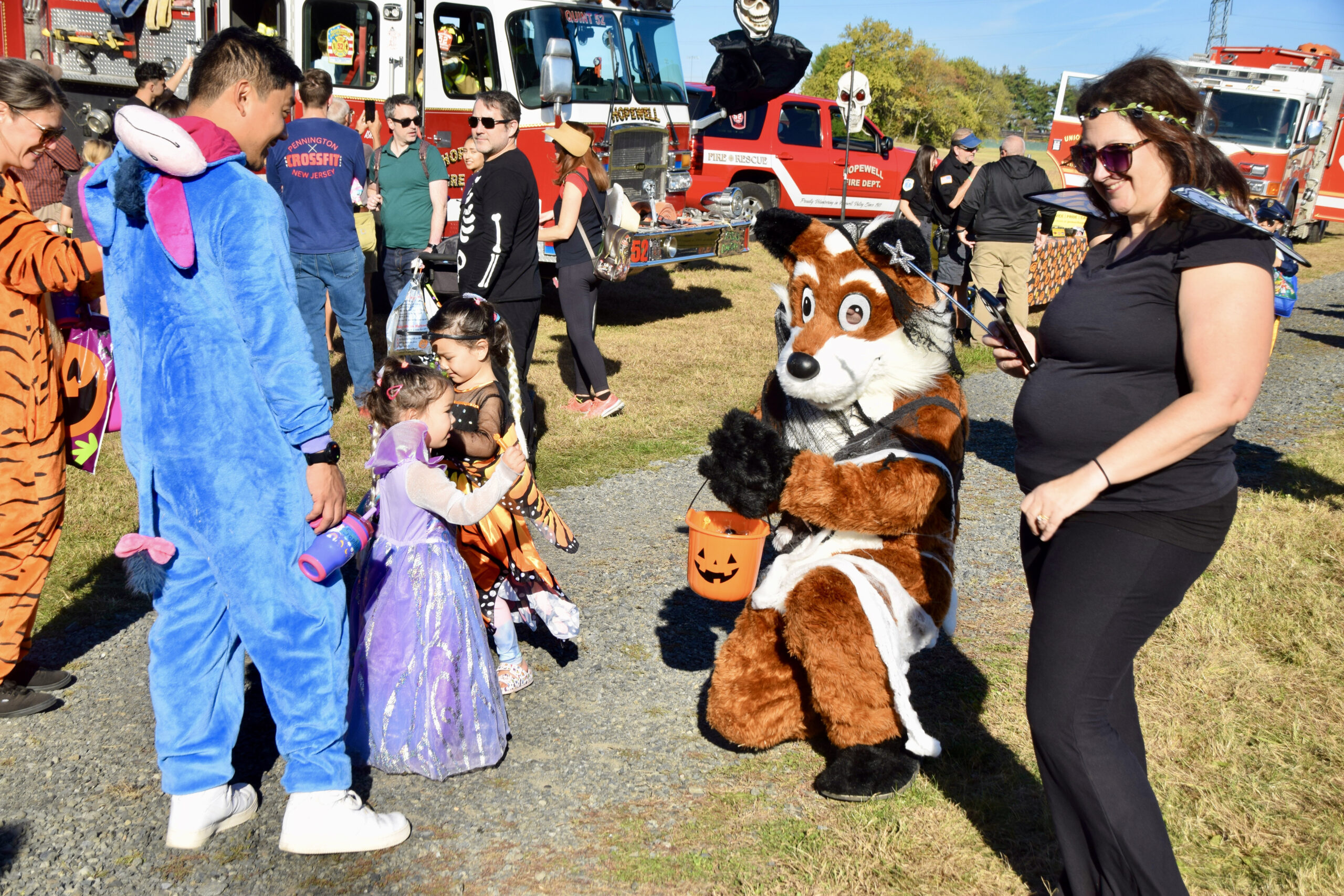 Kids and their grown-ups arrived dressed as superheroes, animals, classic Halloween characters, and even a few video-game favorites — but they weren’t the only ones getting into the spirit. The Hopewell Township Police Department, the Hopewell Fire Department, and EMS personnel all decorated their vehicles for trick-or-treating, while township staff and librarians handed out candy in costume.