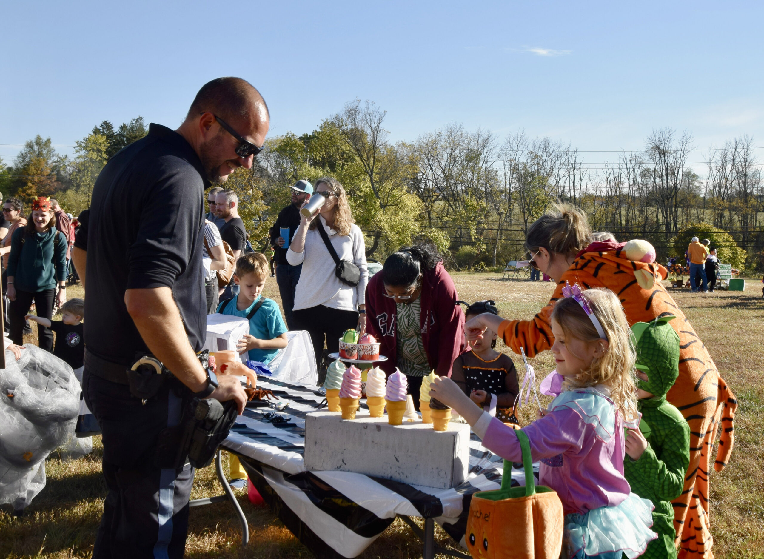 The family-friendly event featured trick-or-treating stations, music, games, and plenty of photo opportunities as families made their way through the park under clear October skies.