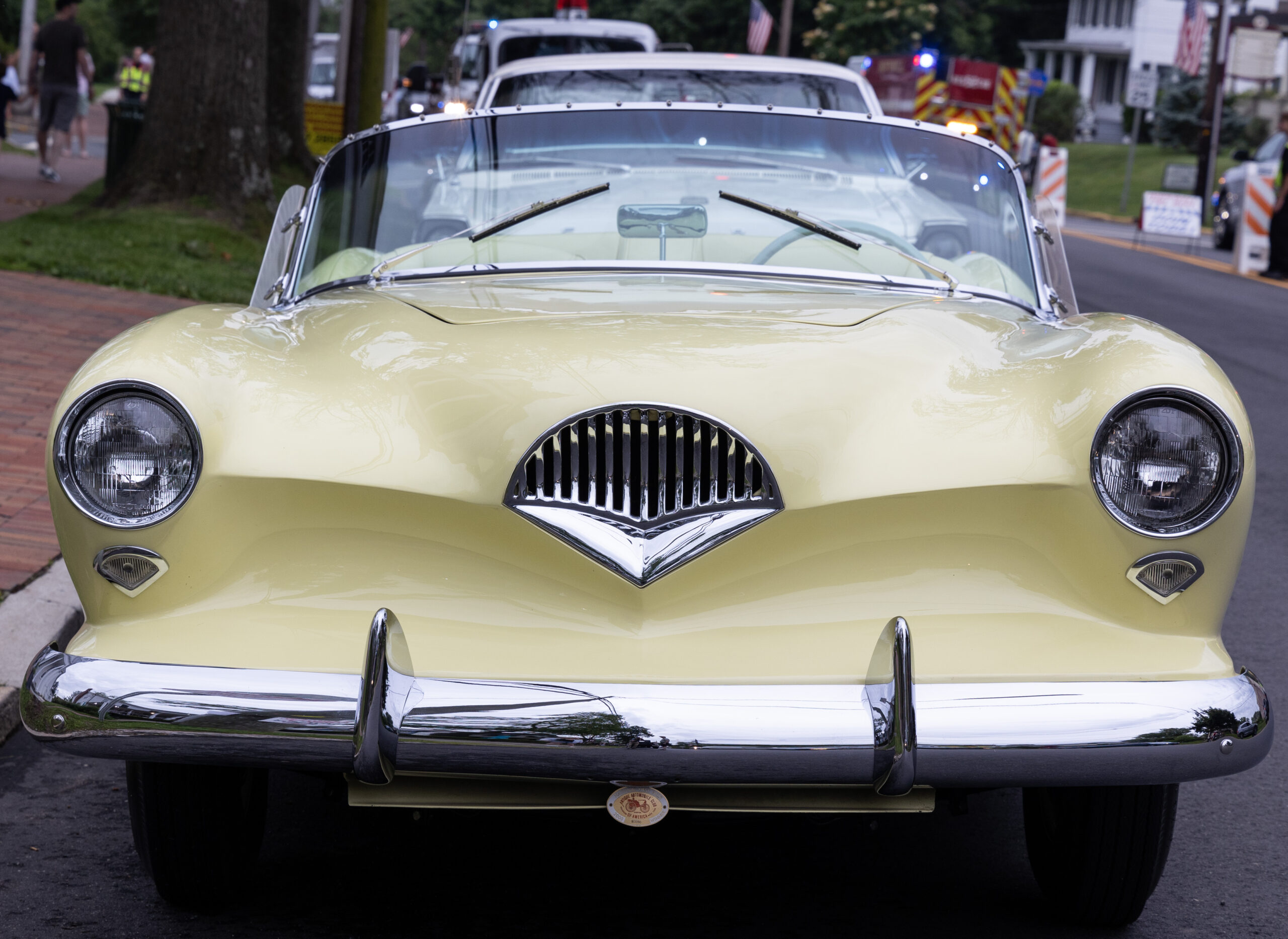 Among the eye-catching entries was a rare 1954 Kaiser Darrin — a fiberglass roadster that beat both the Corvette and Thunderbird to market. Designed by Dutch-born Howard Darrin, the sleek car featured lightweight construction, an unusually long profile, and sliding doors that disappeared into the front fenders — a patented design Darrin had envisioned nearly a decade earlier.