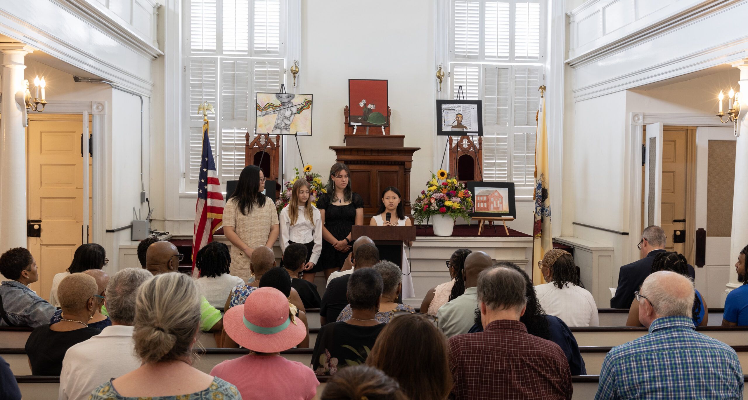 The occasion was the district’s fourth annual Witness Stones Project ceremony, held at the historic Old School Baptist Meetinghouse in Hopewell Borough. Part solemn remembrance and part celebration, the event featured the unveiling of a brass Witness Stone plaque honoring Voorhees—soon to be installed in Hopewell Borough as a permanent public memorial.