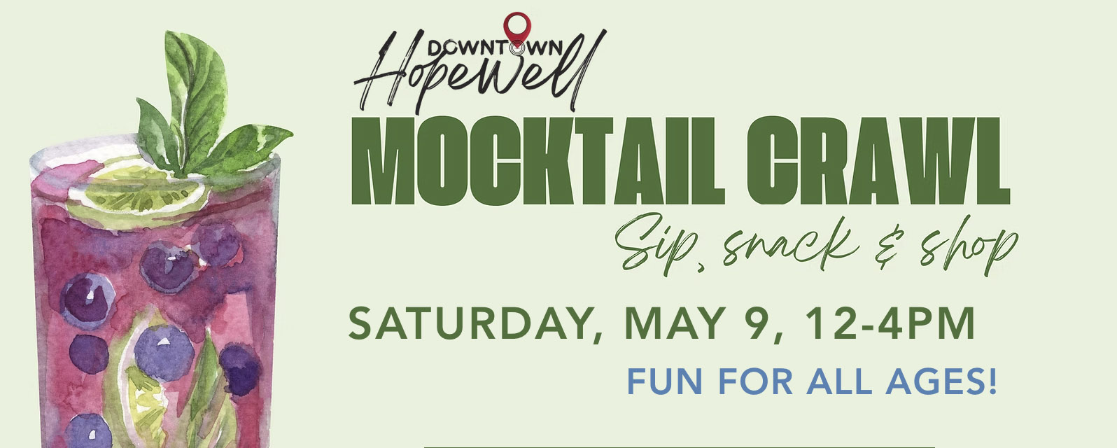 • Purchase online at https://www.downtownhopewell.com/mocktailcrawl