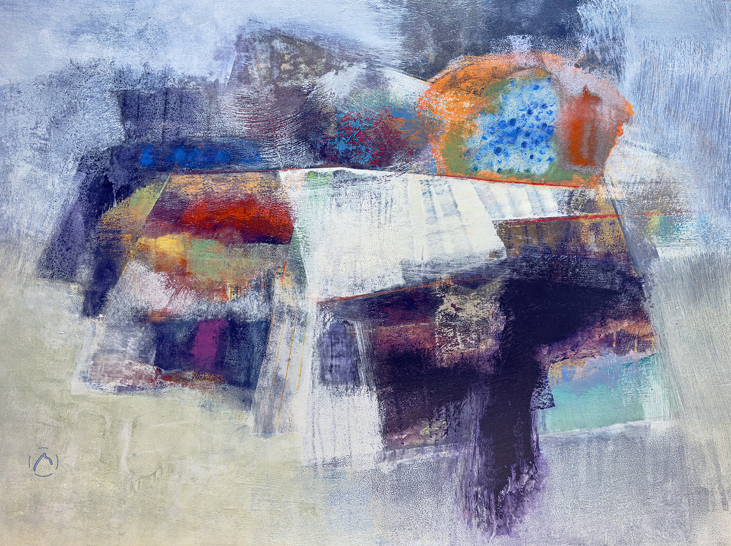 Thousands of years away, the show includes works inspired by the distant past, with canvases evoking prehistoric stone monuments in Ireland and archaeological sites in Spain. Decades away, it is also about the recent past, when Madigan traveled to these sites, discovering their palpable history. Most powerfully, however, “Some Years Away” describes the past few years when Madigan (re)visited memories that made an enduring mark: ocean-ready “curraghs,” church bells, Mediterranean water, paths amidst mountains, entry points of bridges, even quiet moments during moonlit hours.