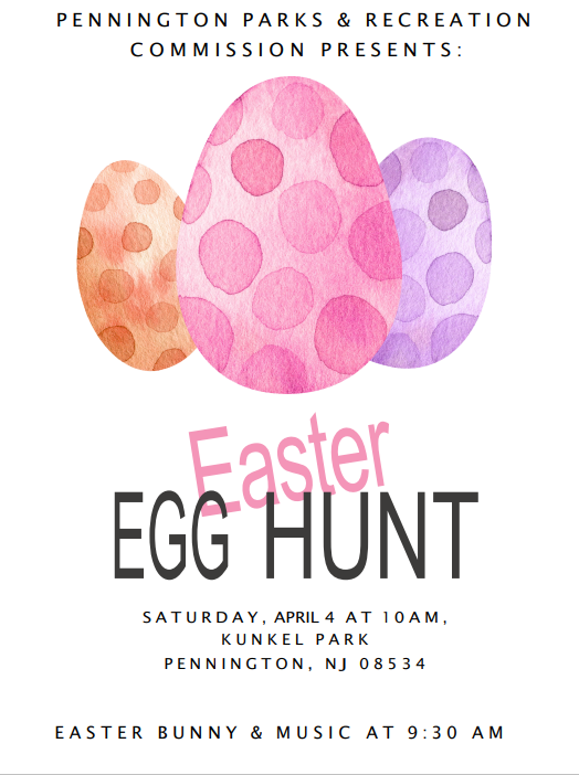 Join the Pennington Parks and Recreation Commission and the Easter Bunny for the annual Easter Egg Hunt on Saturday, April 4 at Kunkel Park in Pennington, NJ. Live music starts…