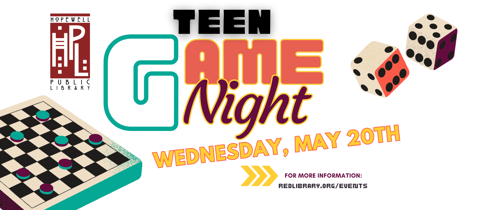 Join the Hopewell Public Library for a game night under the tent. It will be a night of games, fun and pizza! Bring your friends, bring your favorite game, and…