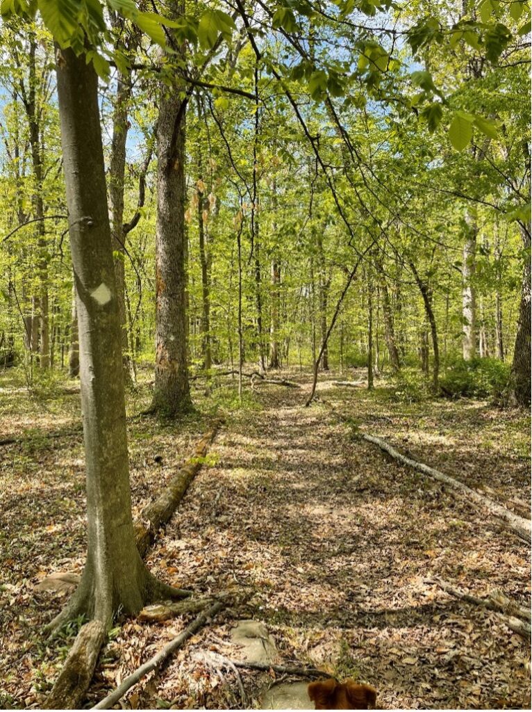 Fenix and I finish the loop through the old woods, where trail markers are subtle and the path is soft. I could linger another hour in the dappled shade, lost in birdsong and the beauty of the forest floor. But Fenix has dinner on her mind, so we climb the gentle incline back to the car.