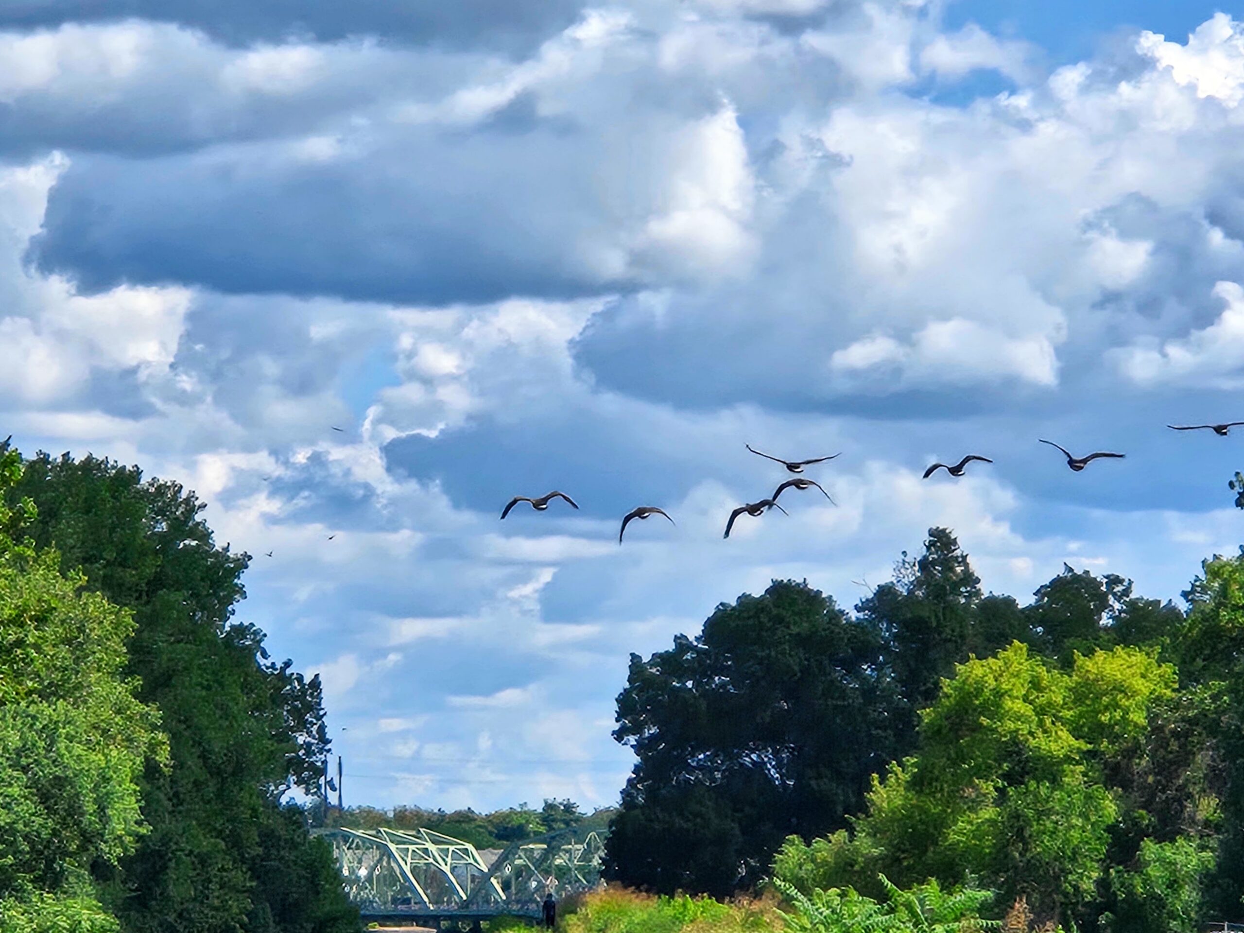 Once we had crossed over to Pennsylvania, we discovered a stone levee that went along the river, between the two bridges.  The walk along the levee was absolutely gorgeous.  We saw geese, ducks, seagulls, and many other birds!