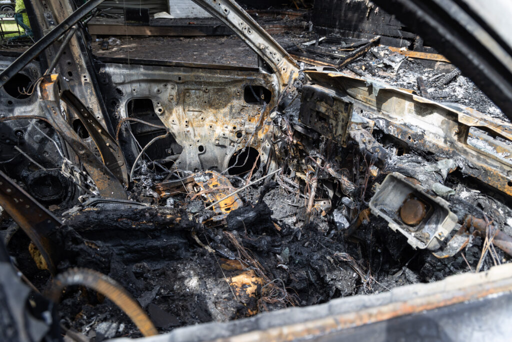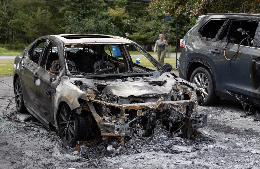 All of the family members escaped safely. Both family cars, hybrids parked in the driveway, were destroyed along with nearly all of their household belongings.