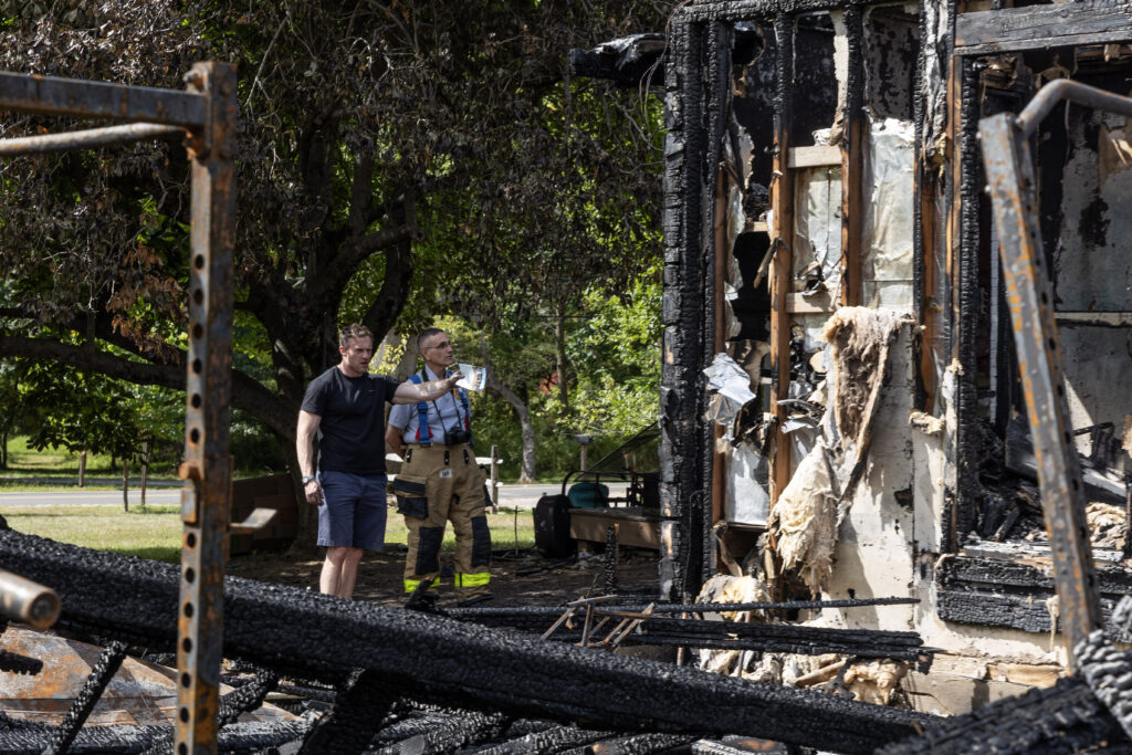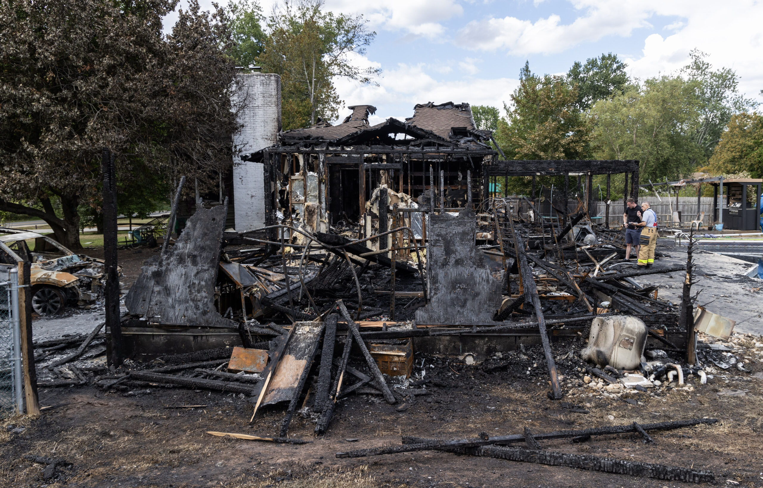 Two days after a pre-dawn fire destroyed their Dublin Road home, Brooke Flammang and Matt Newberry stood among the blackened remains Tuesday afternoon, pointing out where bedrooms, a garage and a sunroom once stood. Fire Marshal Andrew Fosina Jr. of the Hopewell Fire Department walked the property with them, reviewing what happened in the early morning hours on Monday and confirming that the blaze was not suspicious.