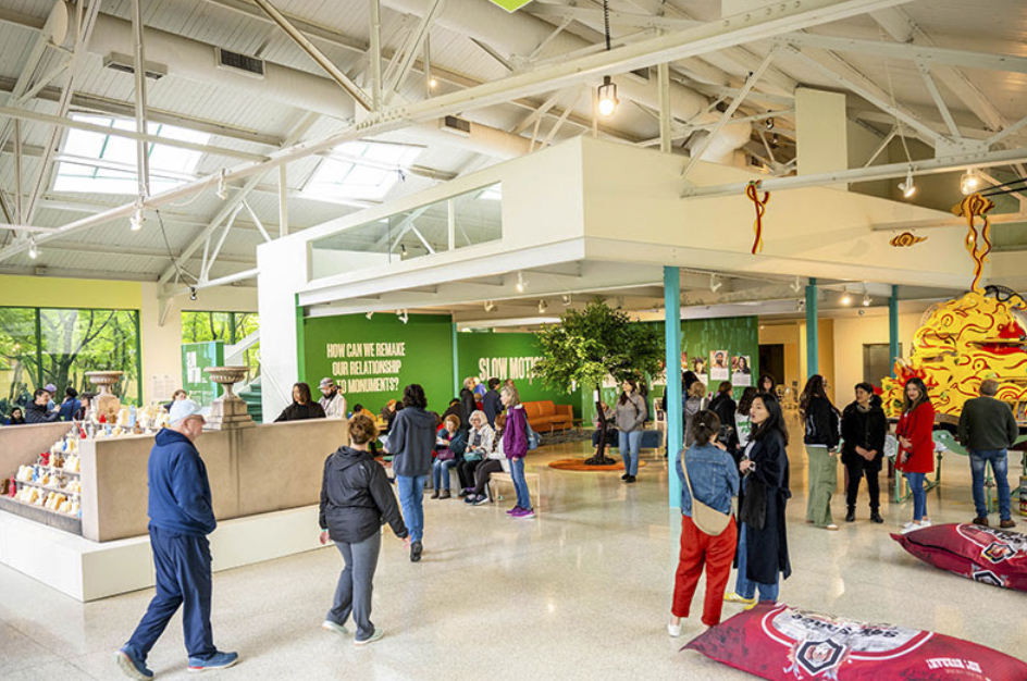 “It’s been a pleasure to work with and learn from these five artists, whose interdisciplinary practices have long experimented with the materialities and temporalities of public memory. Their boundary-pushing artworks for this exhibition have inspired visitors to re-orient themselves in how they relate to monuments, to collective memories, and ultimately, to each other,” shared Patricia Eunji Kim, Monument Lab’s Curator of Slow Motion.