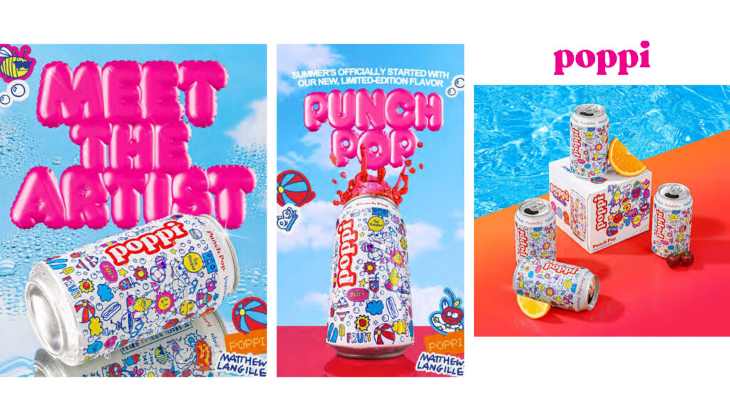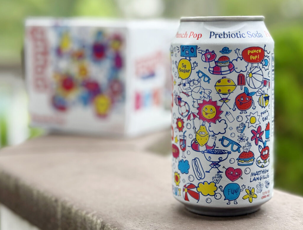 Langille’s career spans more than two decades, with his illustrations gracing products from Swatch watches to Adidas apparel. His instantly recognizable “everything pattern” style—a mix of cheeky, youthful icons and characters—has appeared on thousands of products worldwide. With Poppi’s new flavor Punch Pop, his work is reaching soda drinkers across the country. Punch Pop features Langille’s signature artwork, and the prebiotic soda fits into PepsiCo’s push to offer “gut healthy” options with less sugar than traditional soft drinks. Punch Pop can be found at retailers where Poppi is sold.