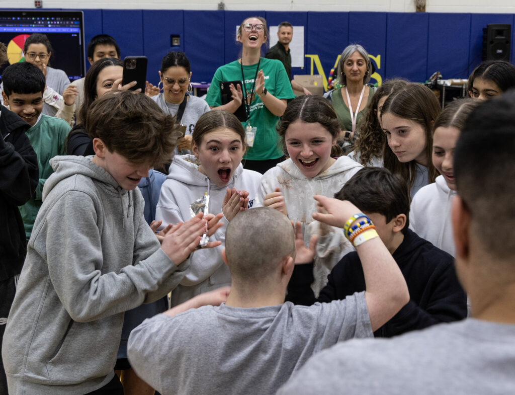 The energy at both schools was electric, fueled by a friendly competition between Bear Tavern and Timberlane to see who could raise the most money. On Friday, Bear Tavern students gathered outside as their classmates and teachers took the plunge. Just days later, on Tuesday, Timberlane Middle School hosted its own event, with more than 45 students, teachers and alumni shaving their heads in front of their peers.