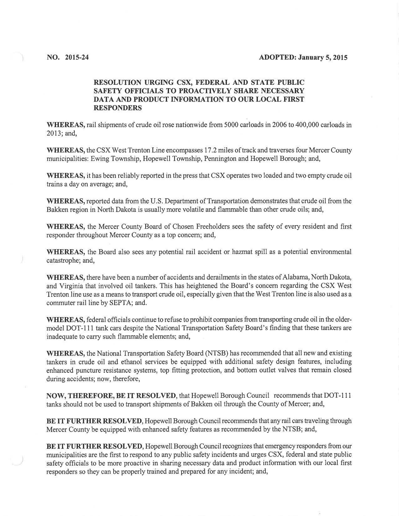 Hopewell Borough Hears Oil Train Presentation, Declines Resolution