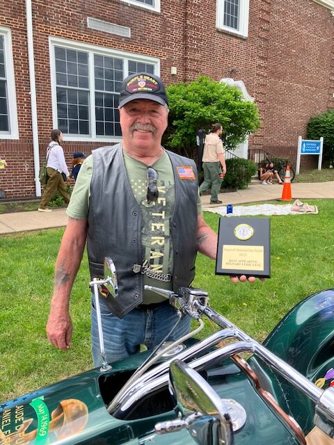 “This is my second year winning the award for Best Military Vehicle in the Hopewell Borough Parade,” said LeRochelle, whose trike is adorned with artwork commemorating patriotism, military service, and the memory of his fallen friends. “I do it to remember my friends. May 14, 1969.”