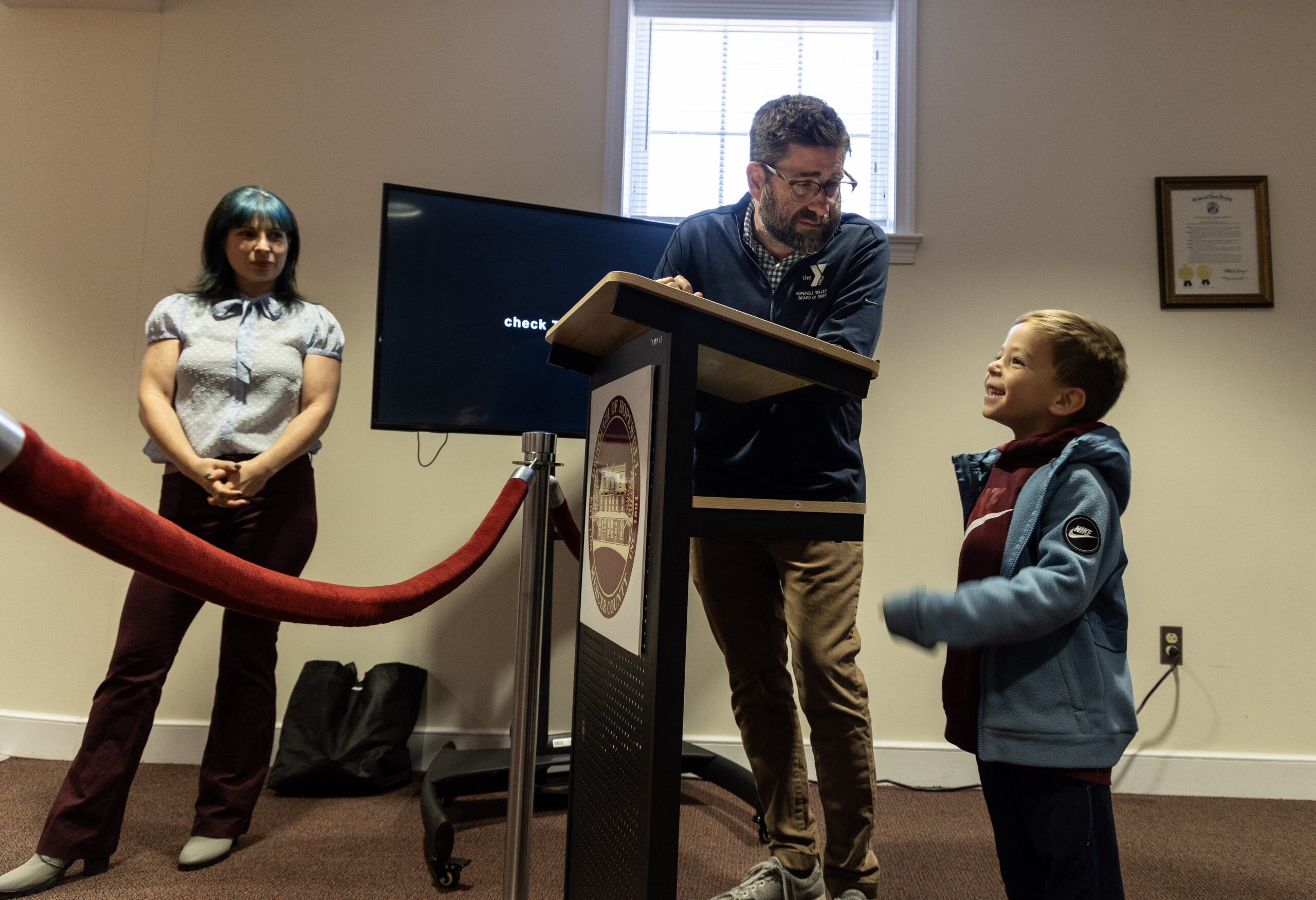 Hopewell Borough Hall briefly belonged to a much younger governing body on Friday morning, when the Hopewell Elementary School first grade arrived for a hands-on lesson in how local government works — complete with a mock ordinance, a public hearing, and an important town-wide decision: