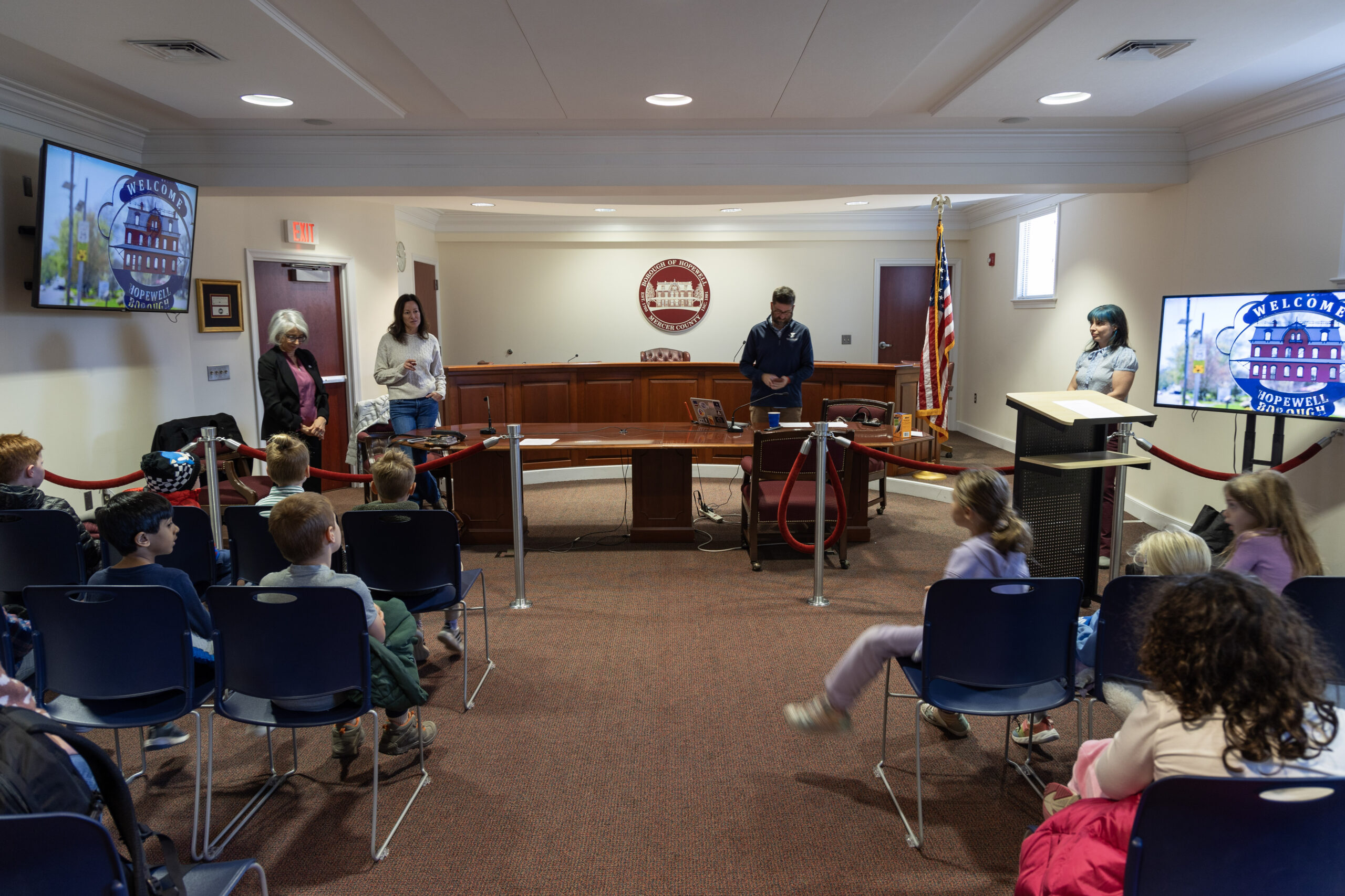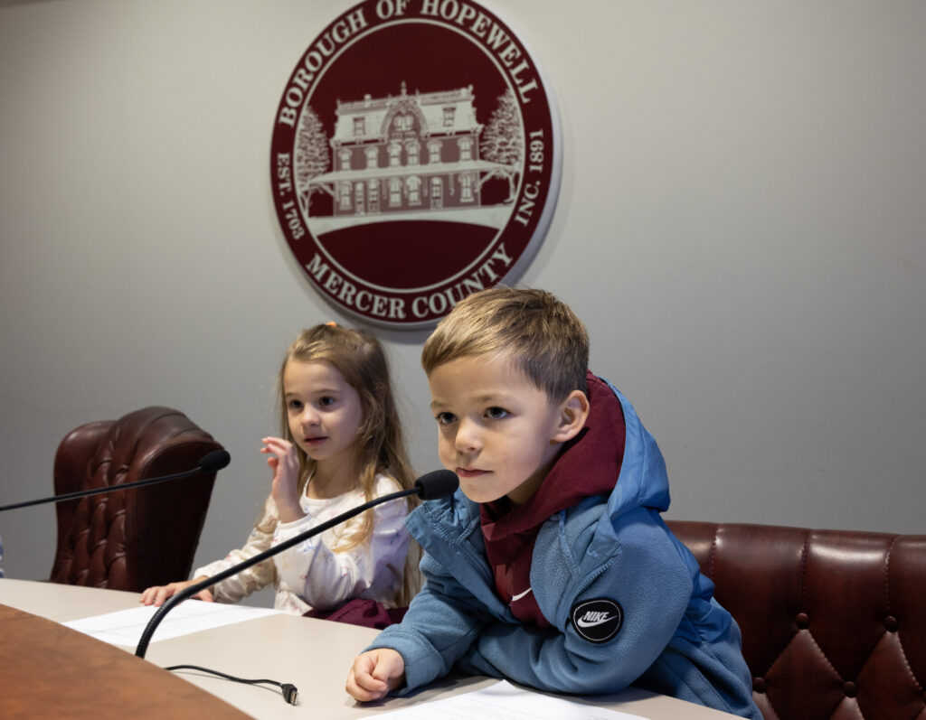 As the students filed out at the end of their visit and walked back to school – the point was clear: For at least a few minutes, they weren’t just first graders. They were Hopewell Borough officials making decisions for their community.
