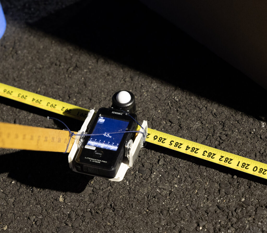 DarkSky Hopewell has since expanded its work to other properties. On Princeton Avenue, the team installed a prototype shield to curb glare from inherited lighting. Measurements taken across the parking lot showed how targeted shielding could reduce direct light trespass while preserving safety-level illumination.