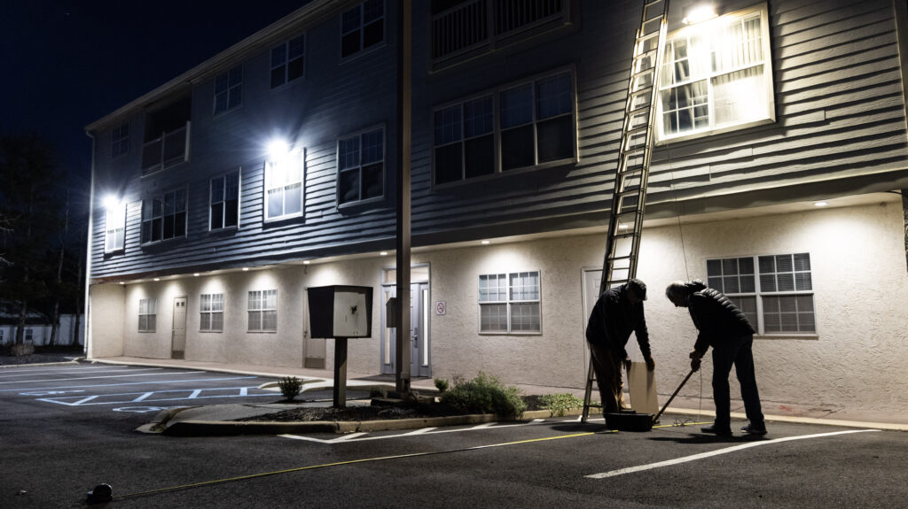Jessie Krause and Alex Kessler can’t sleep. Their bedroom is flooded each night by several bright lights from neighboring properties, beams shining straight through their window until morning. The effect, they say, makes their home feel “like a prison yard.” Yet despite repeated requests for the glare to be reduced, nothing has changed.