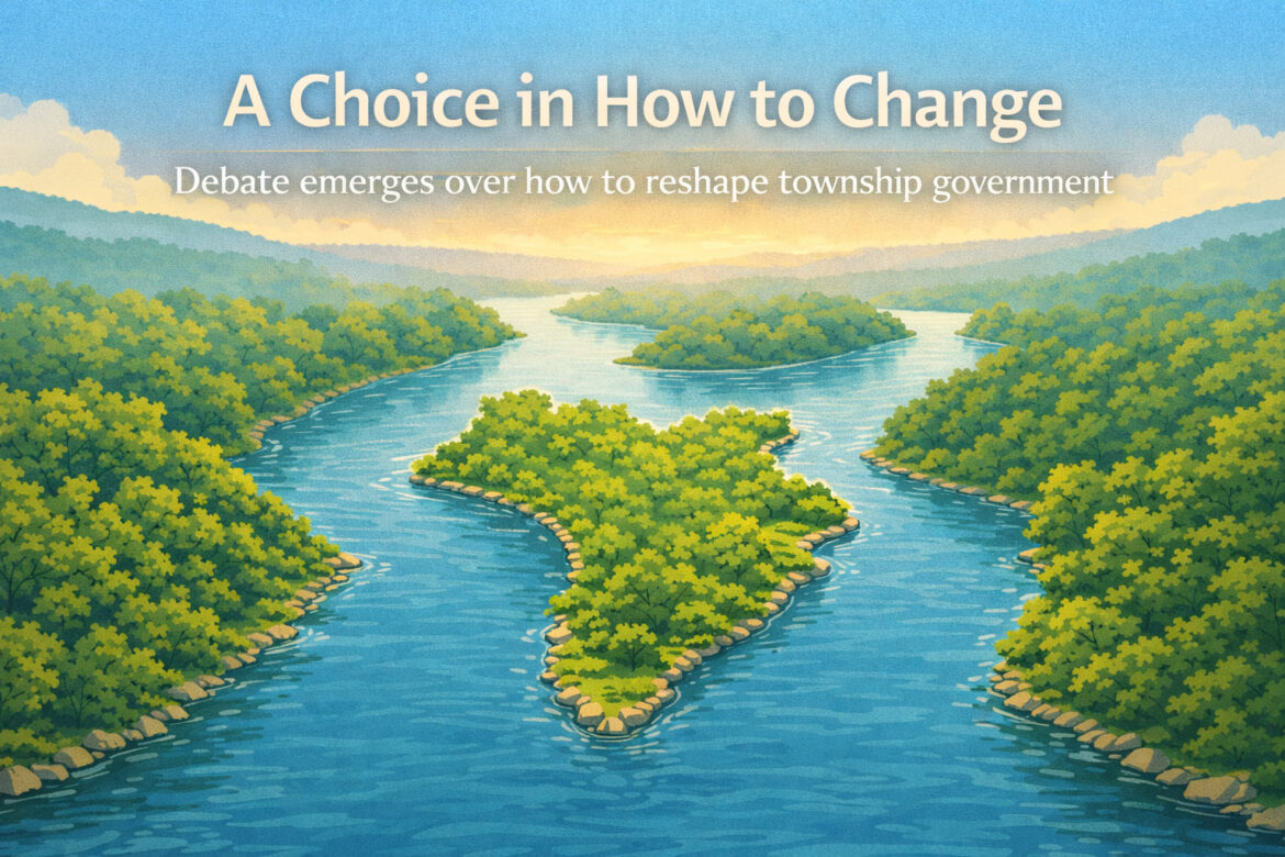 At the same time, a group called Chart New Course has begun organizing a petition drive aimed at placing a referendum on the November 2026 ballot that would shift the township to a different form of government.