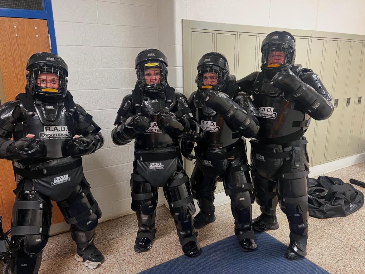Our tussle with Officer Gavdanovich and her fellow instructors took place on “Simulation Night,” the final session of the four-part course. Each class runs three hours and includes lots of repetitive drills—cue the sighs and eye rolls from my teenager. She and her siblings have endured my personal safety lectures since they were toddlers. Perhaps she was annoyed to hear the instructors validate Mom’s “paranoid” ramblings: Check around your car before you get in… Don’t look at your phone while walking… Eyes and ears open… Stay in a group…