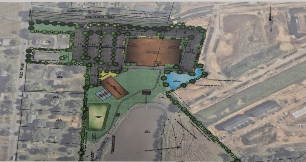 Outside the building footprint, the project intersects with planned roadway changes along Reed Road, including the “Sourland Way” extension associated with nearby development and future intersection realignments with Mercer County — all of which would affect traffic flow once the facility opens.