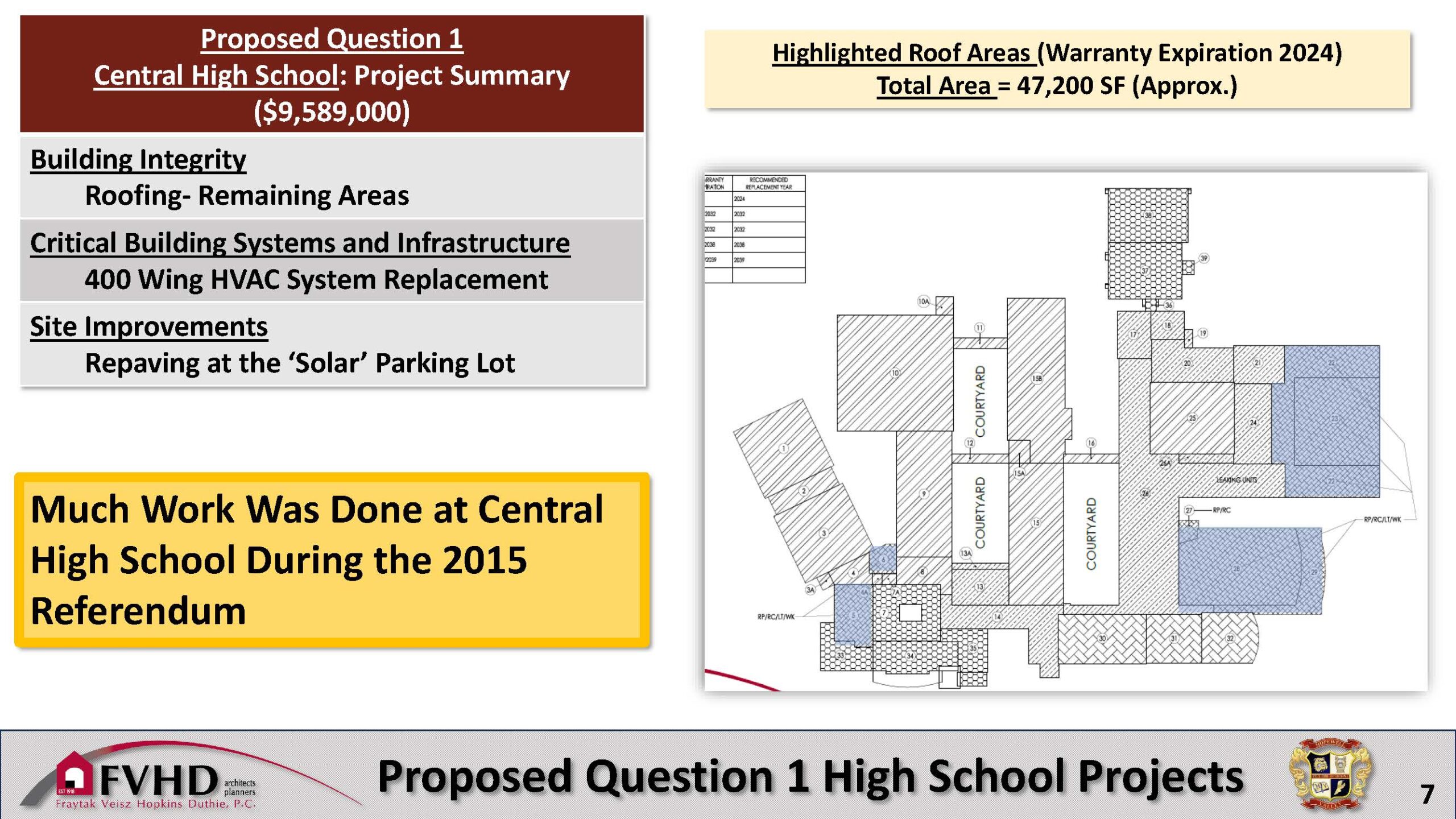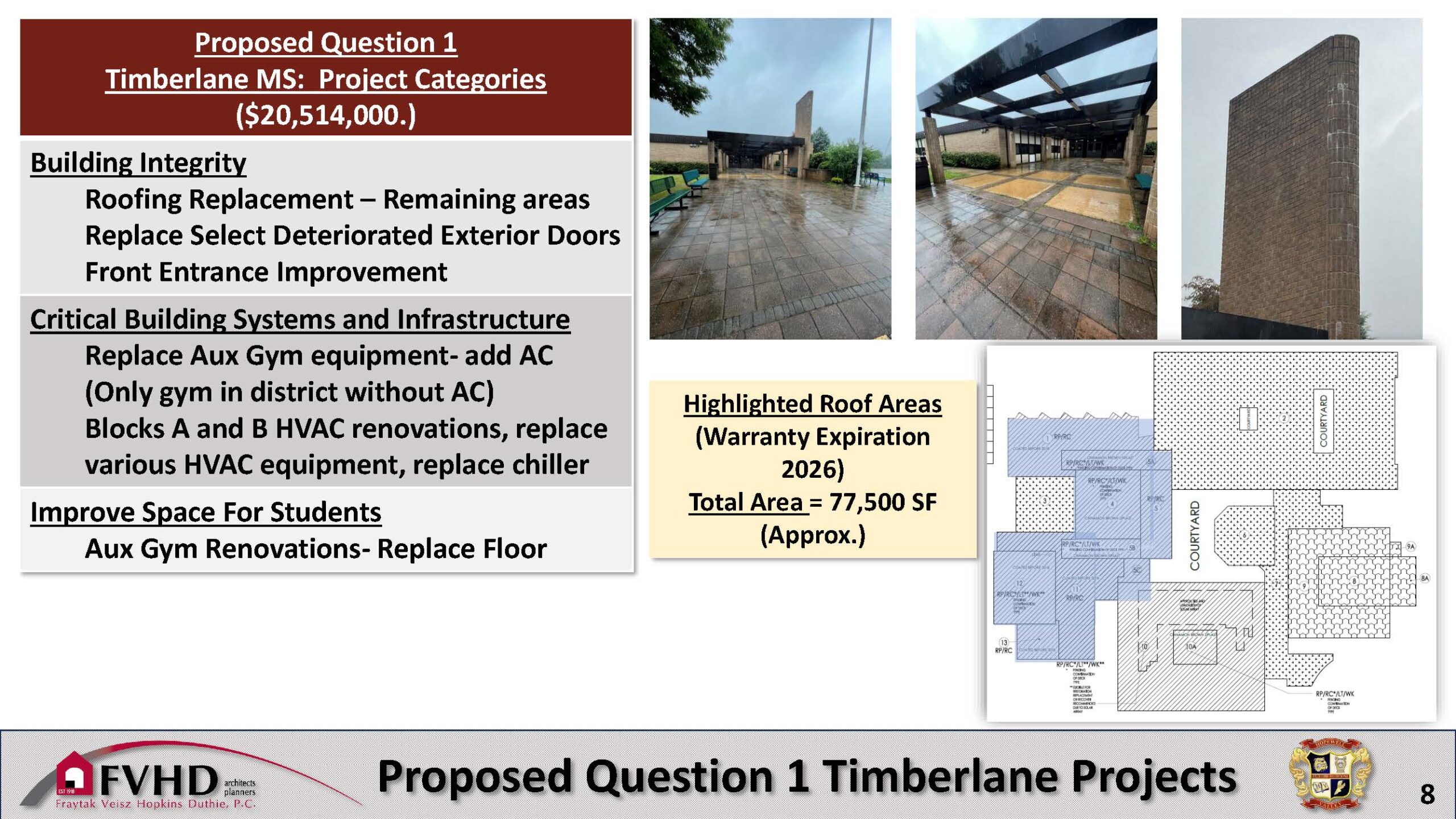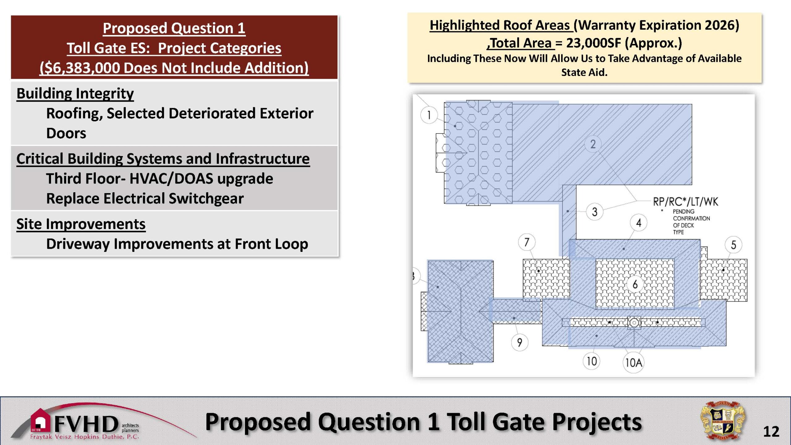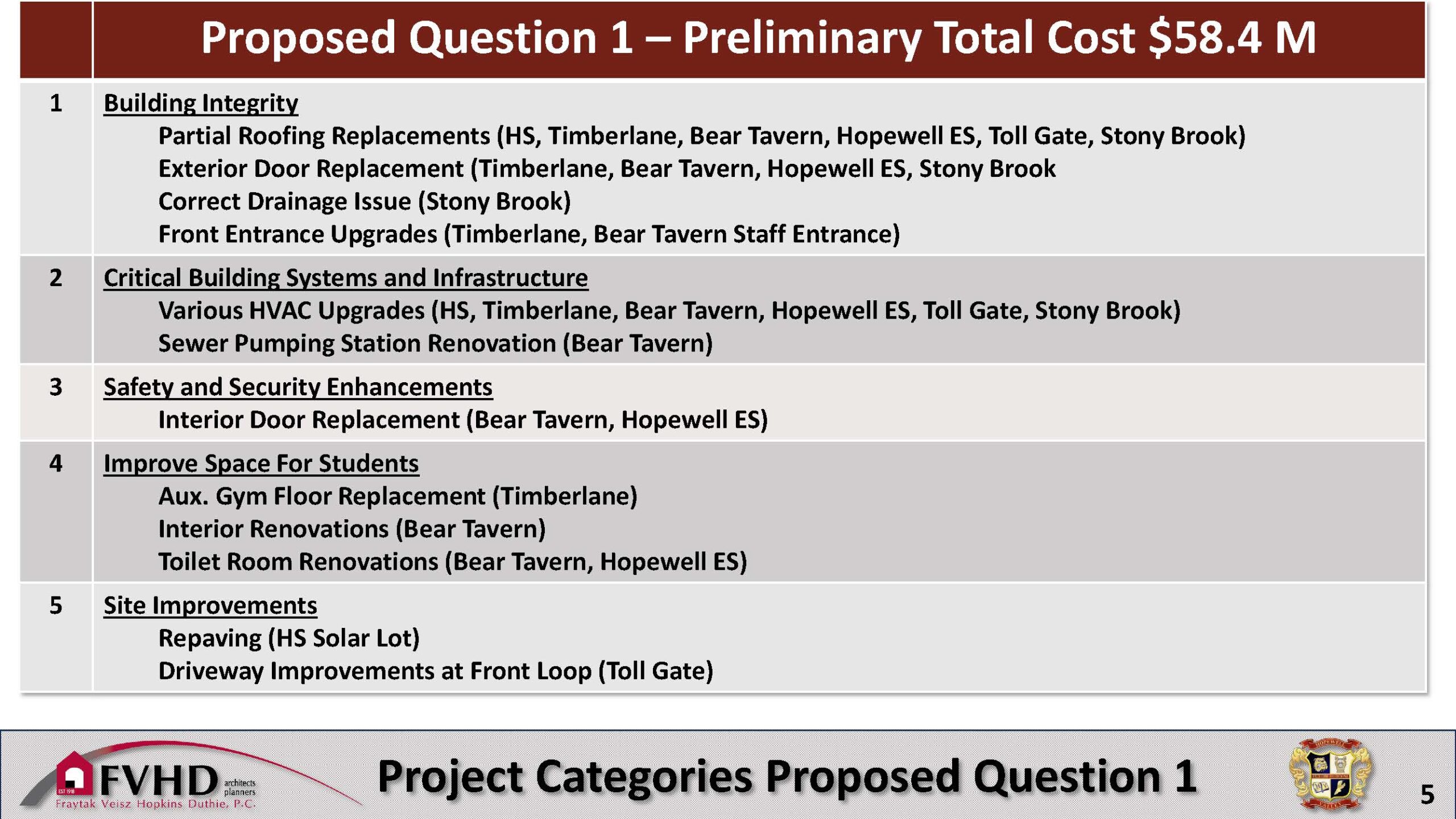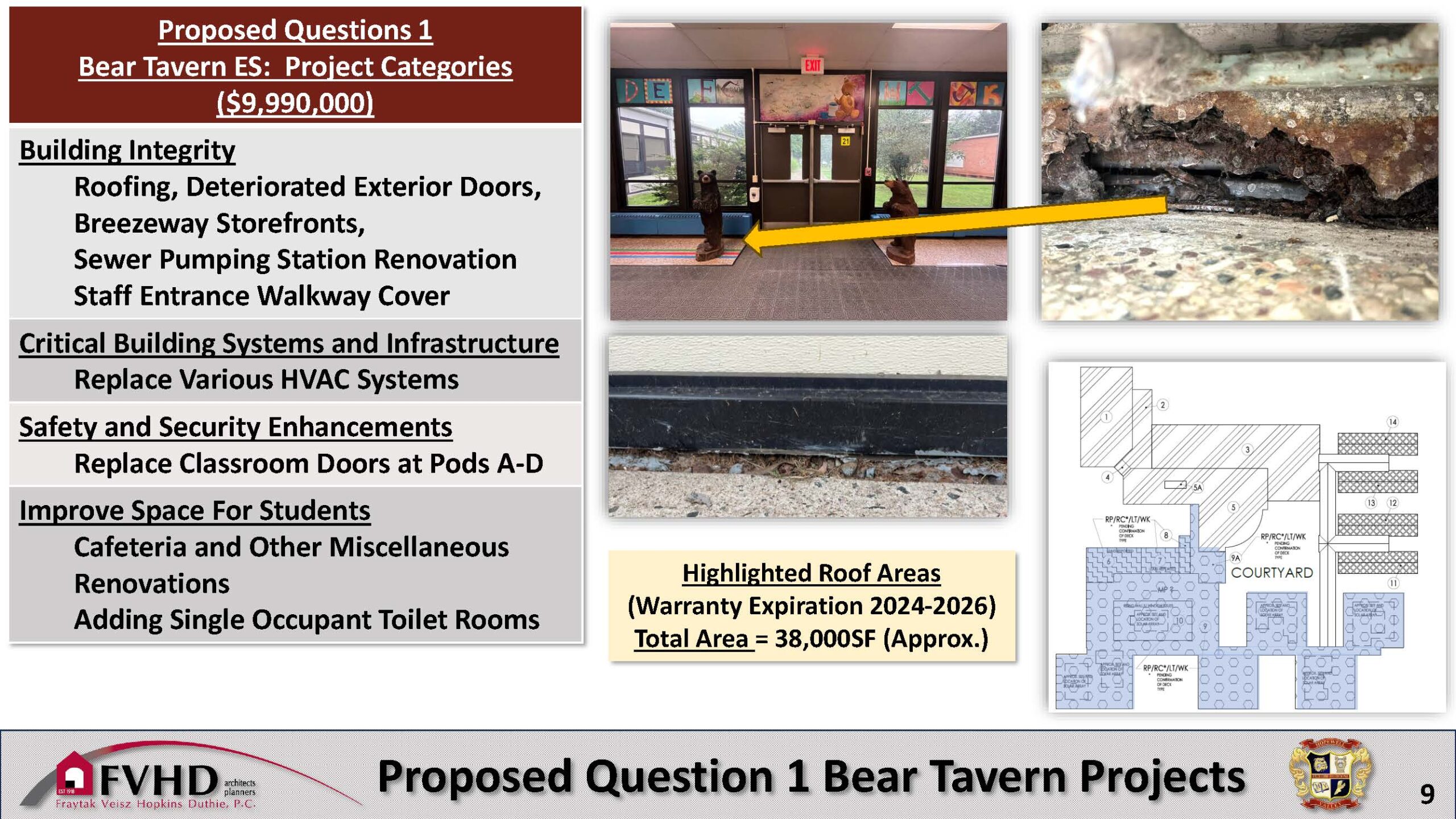 Assistant Superintendent for Finance Robert Colavita detailed the upgrades under Question 1 including: