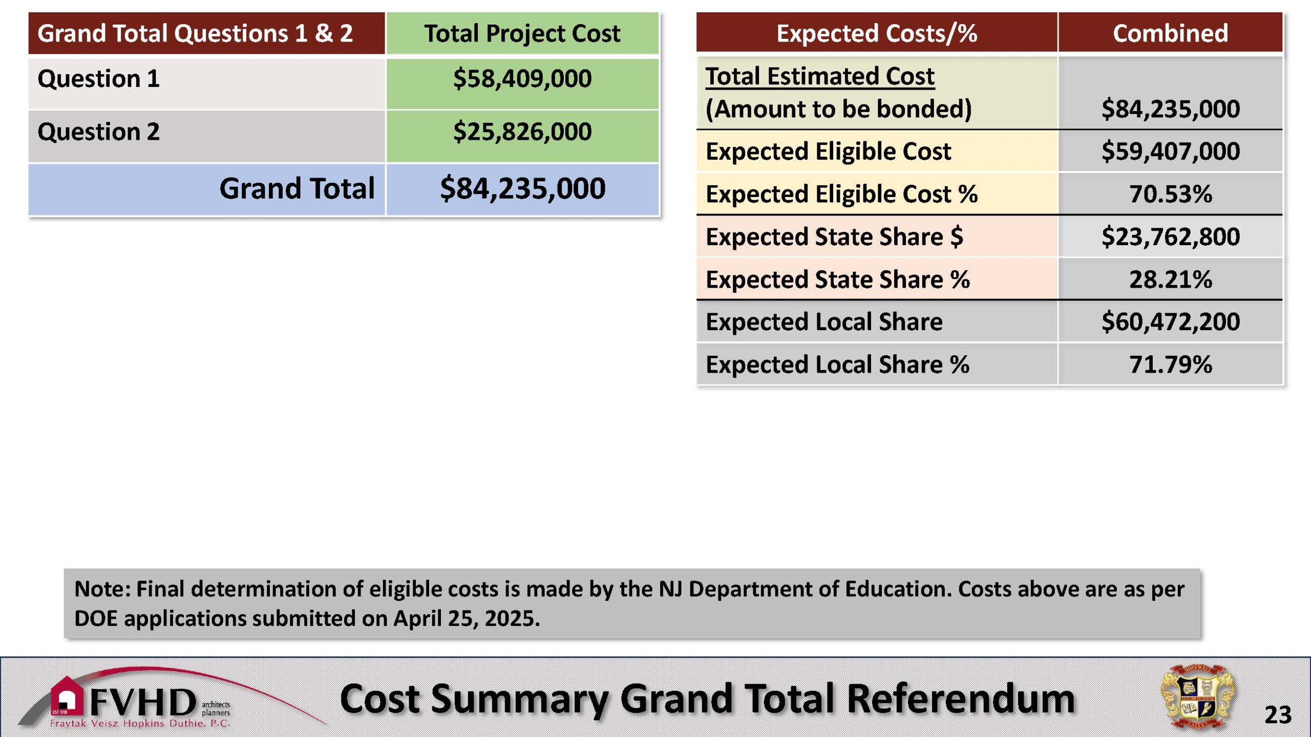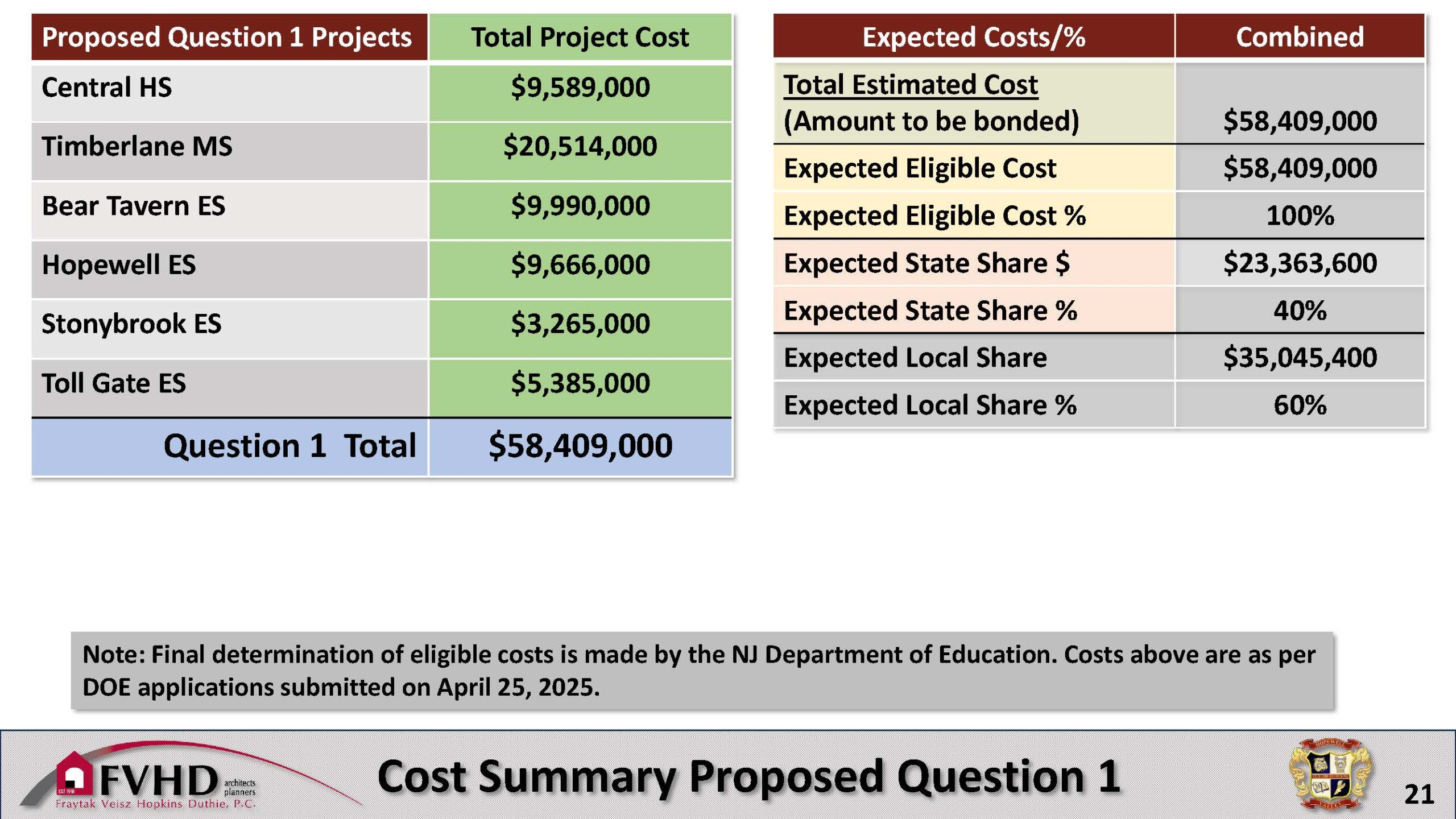 These $58.4 million in Question 1 projects are eligible for up to 40% in state aid, reducing the local cost to about $35 million.
