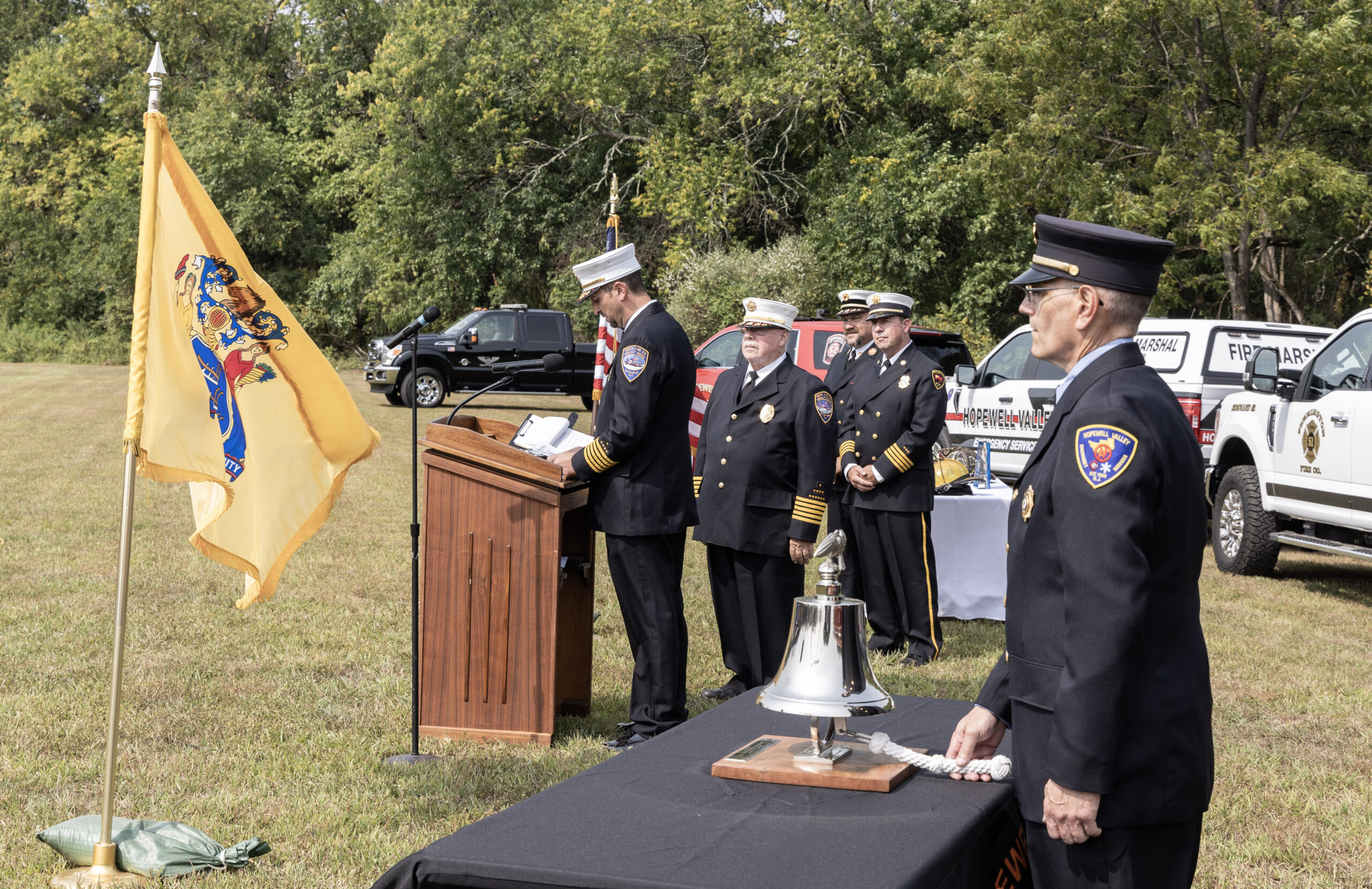 Emergency service members read aloud the names of Hopewell Valley first responders who died in the past year. The ceremony also honored longtime Mercer County Fire Marshal George Lenhardt, remembered as a towering figure in the fire service who served for more than three decades.