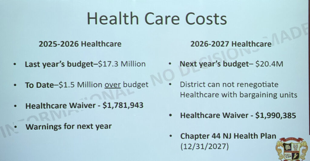 Colavita noted that Hopewell Valley’s status as a self-insured district has helped moderate those increases compared with districts participating in the state health benefits plan, where projected premium growth exceeds 30%. Even so, he said, health care costs continue to place significant pressure on the district’s financial planning.