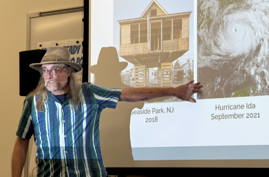 During the presentation, McGrath and Monmouth University Professor Peter Jacques showed photos of recent storm damage in the district—including scenes from Tropical Storm Ida and non-hurricane events that flooded basements, overwhelmed culverts, and damaged school property.