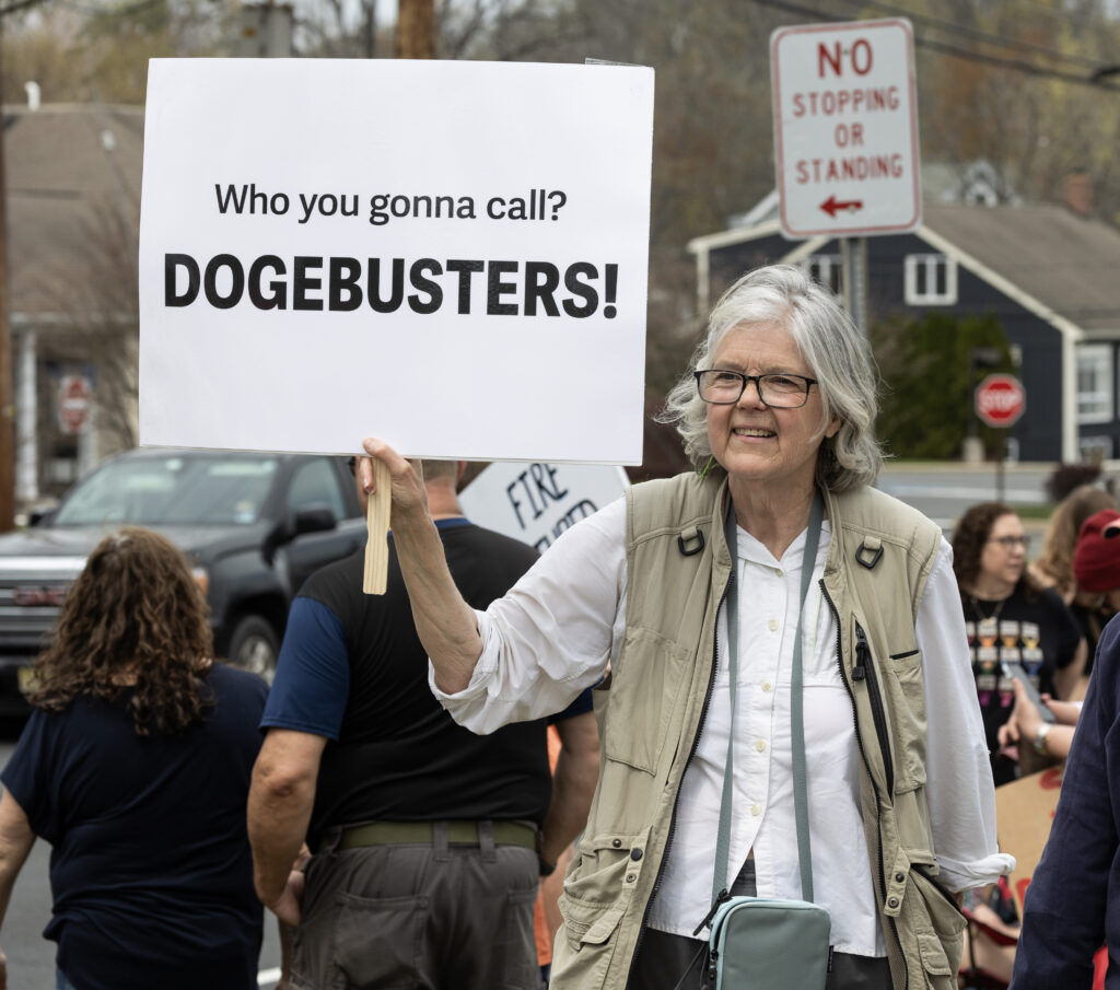 Signs at Saturday’s rally reflected a wide range of criticisms aimed at the administration and the DOGE Service, including references to dismantled federal services, due process violations, and the growing influence of billionaires in government affairs. Some messages included humorous jabs, such as “IKEA Has Better Cabinets,” while others called for systemic change.
