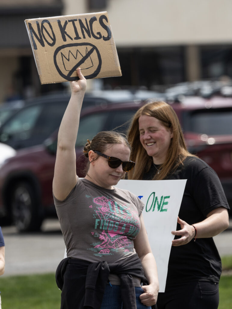 Protesters carried signs with slogans like “No Kings, No Felons,” “Due Process for All,” and “Fire Stupid,” while others waved at passing vehicles, many of which responded with honks and gestures of support. A few motorists also shouted criticism at the crowd, but the event remained peaceful throughout. Protesters waved flags of Greenland and Canada, along with many American flags, as they made their feelings known against the Trump administration.