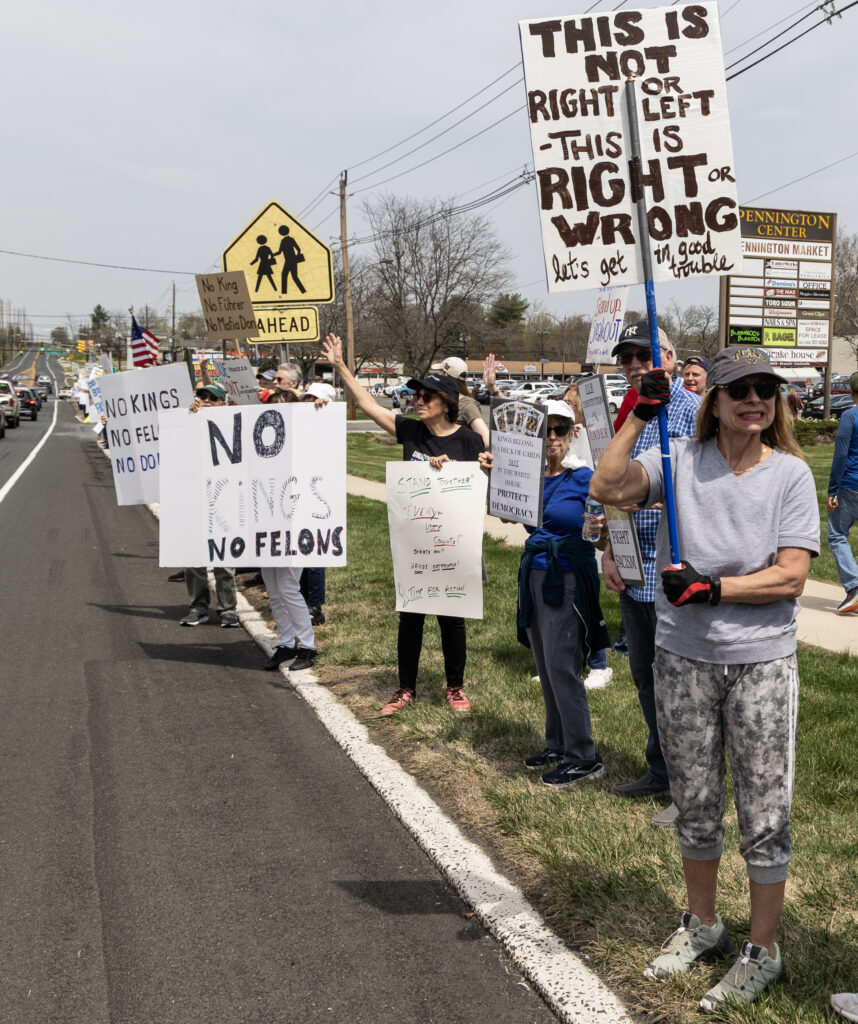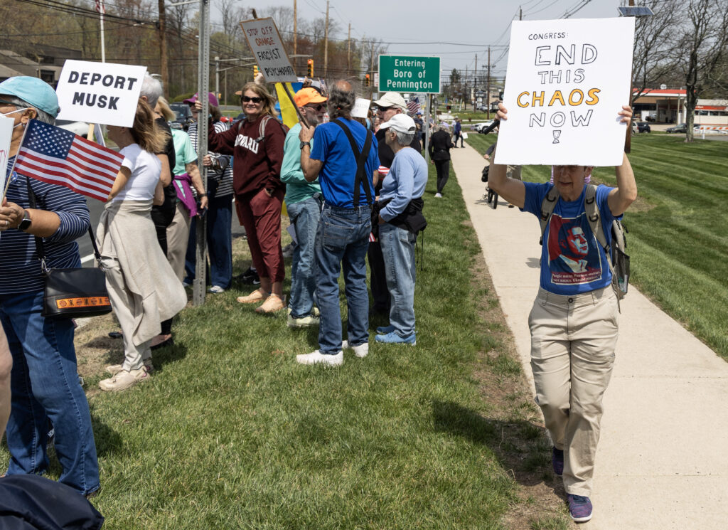 For the second time this month, hundreds of demonstrators lined the sidewalks from the intersection of Route 31 and Delaware Avenue past the edge of the Pennington Center Plaza on Saturday to protest the Trump administration’s policies and the federal government’s controversial DOGE Service, now overseen by Elon Musk.
