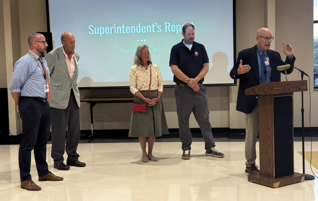 The board also heard an update from the district’s Climate Action Committee, co-chaired by Dr. Scott Brettell and high school teacher Carolyn McGrath. The committee outlined progress across its five working groups: Education, Transportation, Food & Waste, Resilience, and Facilities.