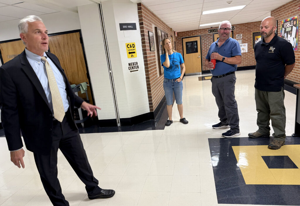 At 5:30 p.m., administrators led the board and community members through the high school’s 400 wing, a stretch of classrooms that looks polished thanks to past renovations but hides critical infrastructure flaws. The HVAC system, original to the late-1990s construction, breaks down regularly. “We’ve had very, very cold rooms or very, very warm rooms,” Director of Facilities Thomas Quinn explained, noting that relocating classes isn’t an option for science labs that require specialized space.