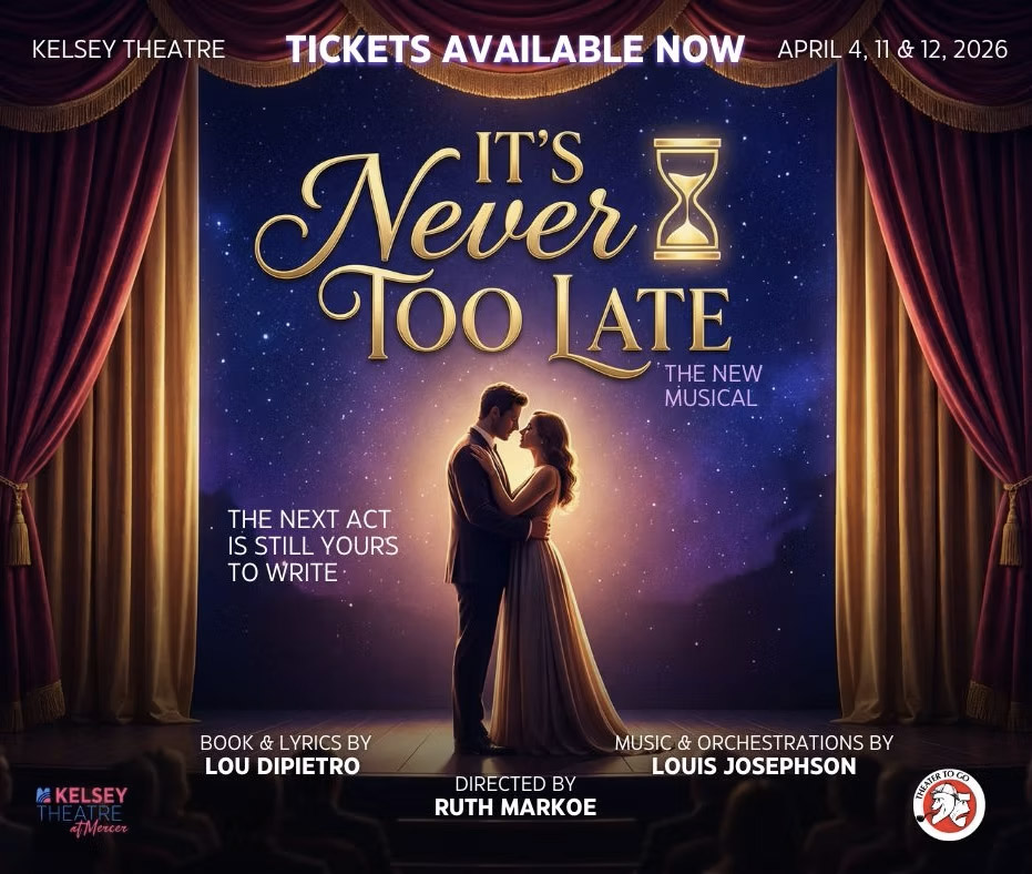 Theatre To Go will present a limited run of It’s Never Too Late, written by Hightstown resident Lou DiPietro with music by West Windsor native Louis Josephson, April 3 through April 12 at the West Windsor campus theater.