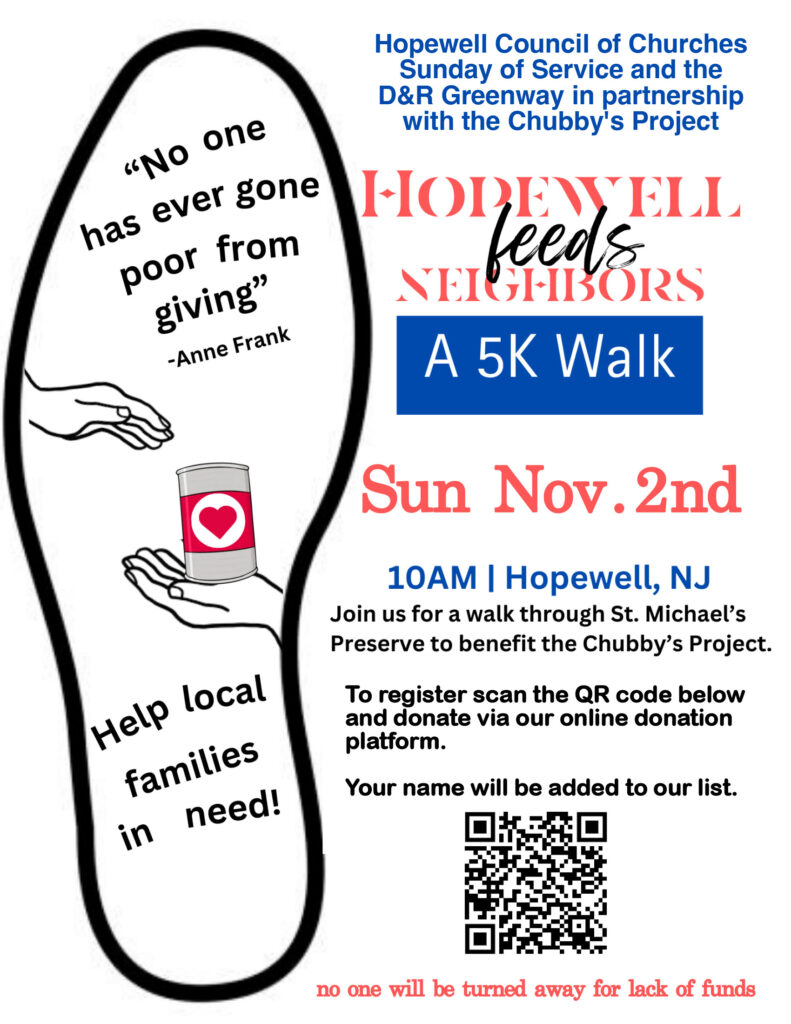 Across Mercer County, local groups are mobilizing to support residents affected by the federal SNAP suspension. On Sunday, November 2, the Hopewell Council of Churches and the D&R Greenway Land Trust will host the “Hopewell Feeds Neighbors” Hunger Walk, a community fundraiser benefiting The Chubby’s Project, which provides weekly meal deliveries and grocery assistance throughout the Hopewell area.