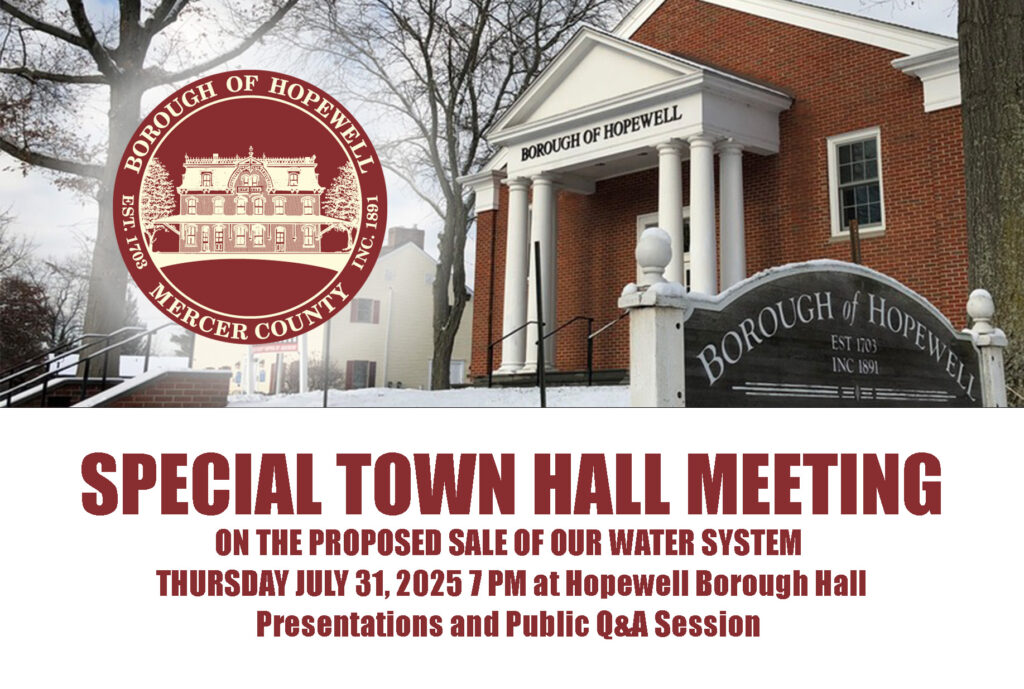 Editor’s Note: The special town hall meeting scheduled for July 31 in Hopewell Borough to discuss the sale of the water system has been postponed due to weather.