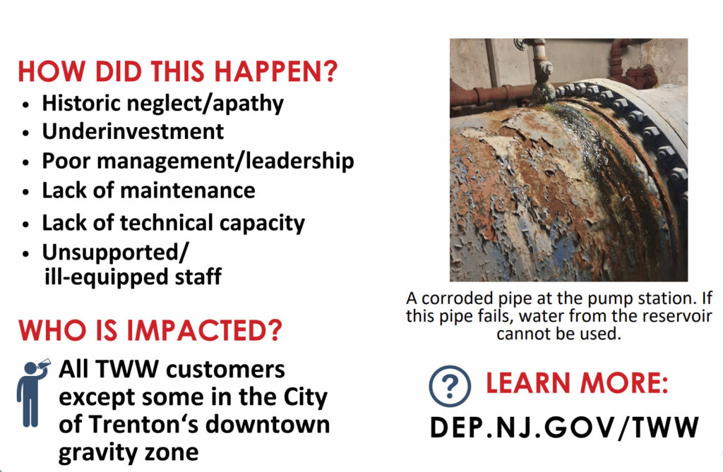 Martin pointed residents to NJDEP’s public website outlining four critical single points of failure identified at the TWW plant, including: